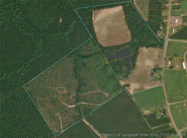 Rare opportunity to own approximately 109 acres of versatile rural land offering a unique blend of productive farmland, recreational acreage, and long-term investment potential. This offering consists of two adjacent tracts. Approximately 58 acres of timberland were harvested in 2022 and professionally replanted under a forestry management plan, creating excellent long-term timber investment potential. The remaining acreage includes actively farmed land, with crop rotation of corn and soybeans, supporting strong agricultural productivity. A standout feature is the nearly 3-acre pond, offering scenic views, abundant wildlife, and outstanding recreational opportunities. The wooded portion has been leased for hunting for many years, reflecting consistent recreational use and possible income potential. The property features highly desirable soils including Wagram loamy sand, Norfolk loamy sand, Marvyn loam, and Johnston mucky, making it well-suited for farming, timber management, and conservation, a rare combination for a tract of this size. Located in a quiet, very rural setting, yet conveniently positioned approximately 1 hour from Wilmington and Fayetteville and about 1 hour 20 minutes from Raleigh, this property offers privacy without sacrificing regional access. Whether you're seeking farmland, hunting land, timber investment, recreational property, conservation acreage, or a long-term land holding, this exceptional property offers endless possibilities.