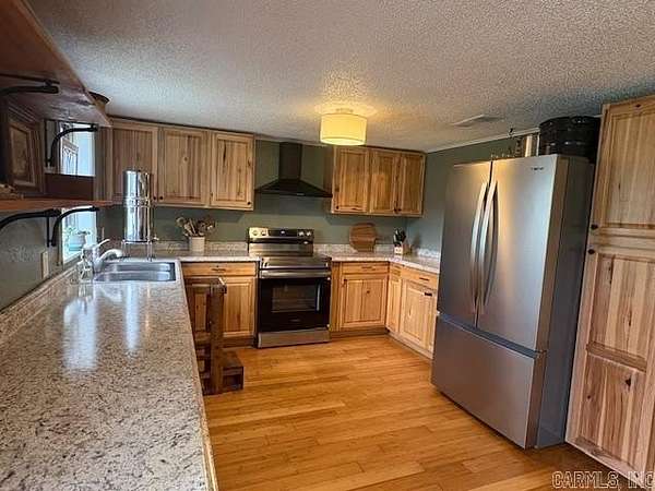 990 Hempstead 333 McCaskill AR 71847 $349,000 • Built in 1972. Remodeled in 2019. • 30 acres, more or less. • 2,180 sq ft, per tax card. • 4 bedrooms, 2 bathrooms. • Split floorplan. • Open floorplan. • Wood burning stove. • Formal Dining room. • Large Family room. • Bamboo flooring throughout. Ceramic tile in the bathrooms. • Complete kitchen remodel in 2019. • Double carport. • LARGE laundry room / mud room. • Interior and exterior painted in 2019. • Gutters, 2019. • Foundation, 2019. • All new ducts & HVAC, November 2024. • Stainless steel appliances, 2025. • All electric – SWEPCO. • Nashville rural water. • Septic. Cleaned out in 2023. Field lines run on the west side of the house. • Large garden spot with irrigation system. Lots of perineal herbs and Jerusalem artichoke. • ~15 fruit trees: plum, mulberry, Cherry, fig, peach, pear, apple. • Pond. • ARROWHEADS. See photo. • Storm cellar. • Landscaping with jonquils, daisies, irises, strawberries, roses, etc. • Huge covered front porch + back patio. • Completely secluded and very peaceful. • 100+ year-old hand dug well. See photo. • Perimeter fence. • Chicken coop. • RV concrete slab.
