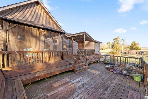 This one-owner, custom-built home offers the perfect blend of comfort and privacy on just under 3.5 acres. Tucked away in a peaceful setting, the 4-bedroom, 2.5-bath home provides plenty of space while still being only 15 minutes from Murray or Mayfield. Inside, the thoughtful floor plan includes a Jack and Jill bathroom with dual sinks and toilets, plus a shared tub/shower--ideal for busy mornings. An additional office space could easily serve as a 5th bedroom, giving you flexibility for your needs. Outside, enjoy the quiet surroundings from the back deck, or take advantage of the barn and detached shop for storage, hobbies, or projects. If you're looking for a place to relax and enjoy the privacy of country living with the convenience of nearby towns, this home is ready to welcome you.
