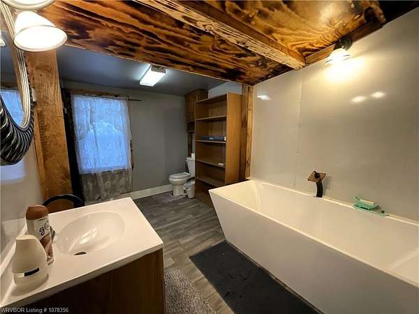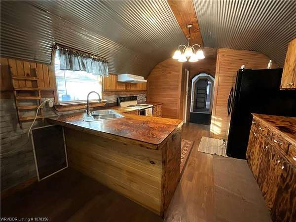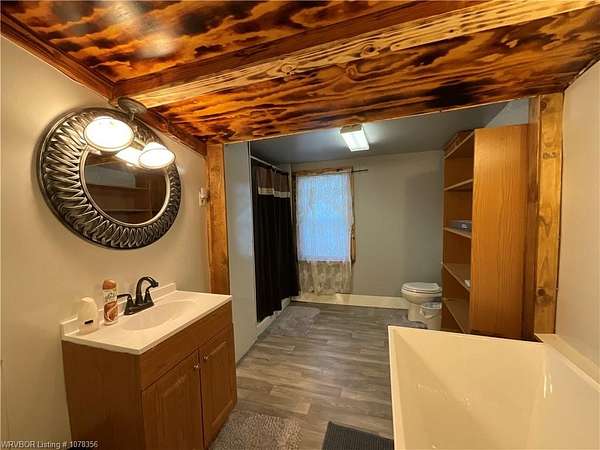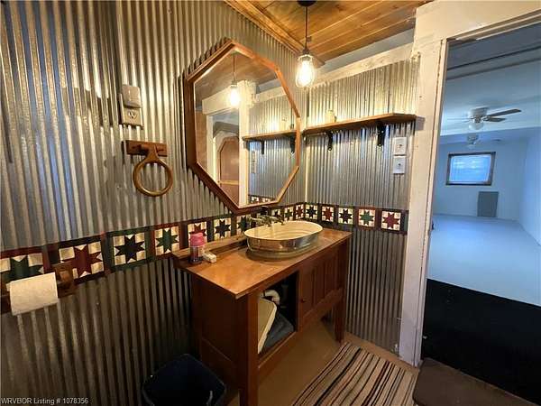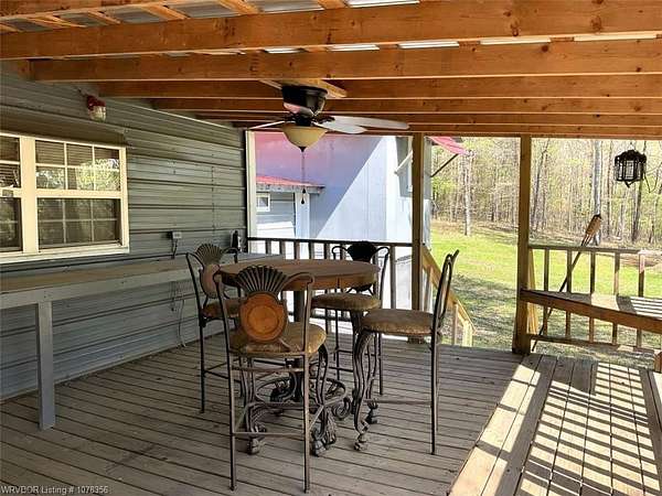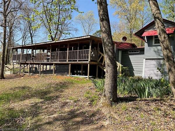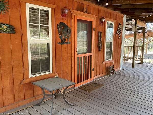 Unique home on 3 acres. Wraparound deck, metal siding & roof. Rustic interior with tongue & groove wood in living room. Hall bath has metal tubs for shower & sink. Large 18 X 21 primary suite with soaking tub and walk-in shower. Lots of storage with large pantries and closets. Surrounded by woods with a view from all decks, including the 20X50 deck on the back. Plenty of deer sightings. Approximately 15 minute drive to Alma stores & restaurants.