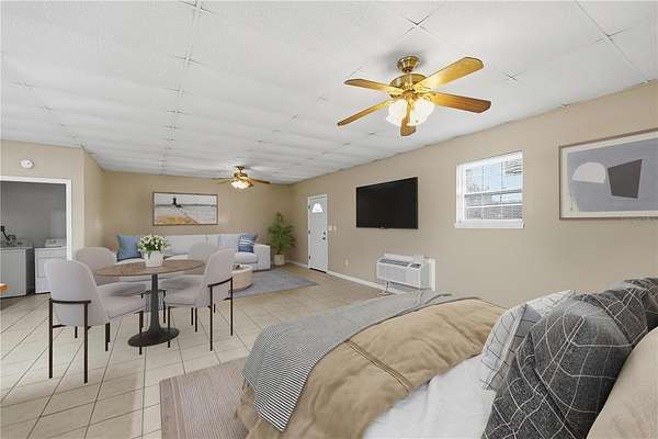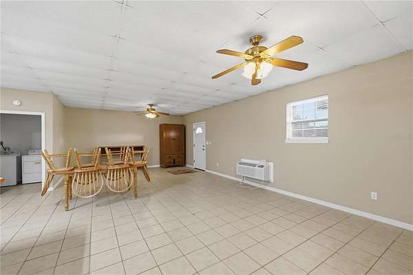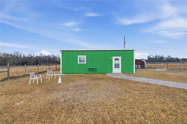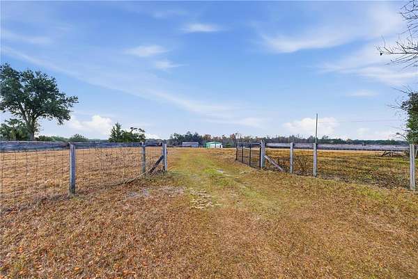 One or more photo(s) has been virtually staged. Barndominium on prime 14.11+- acre A-1 zoned property perfect for livestock, equestrian use or agricultural use. Fully gated, fenced, and cross-fenced with multiple well-maintained pastures and approximately 3-4 acres of wooded shade. Improvements include a 50x40 pole barn with electric and water, horse stalls, and water service to the rear field--ideal for horses, livestock, or rotational grazing. A separate fenced yard surrounds the barndominium studio apartment - perfect for guests, farm help, or extra income - featuring a kitchen and bath, brand-new A/C, new blinds, and a new entry door, plus an additional storage shed. Outstanding location directly on Sunset Harbor Road, just minutes from Lake Weir. Bring the animals, the toys, and your vision!