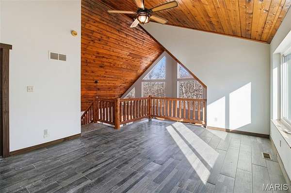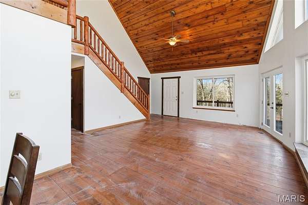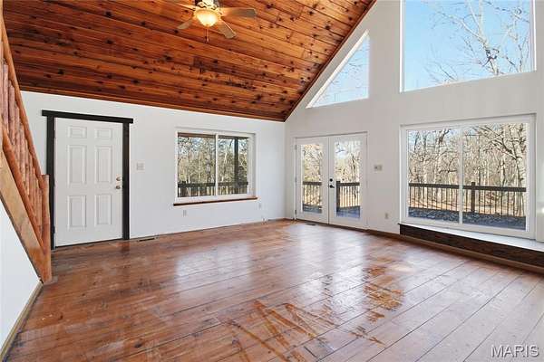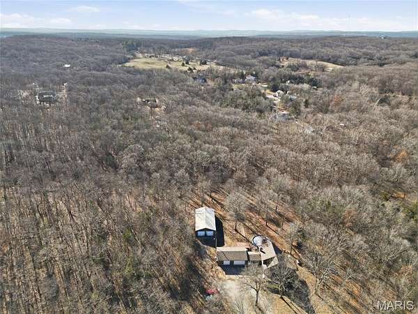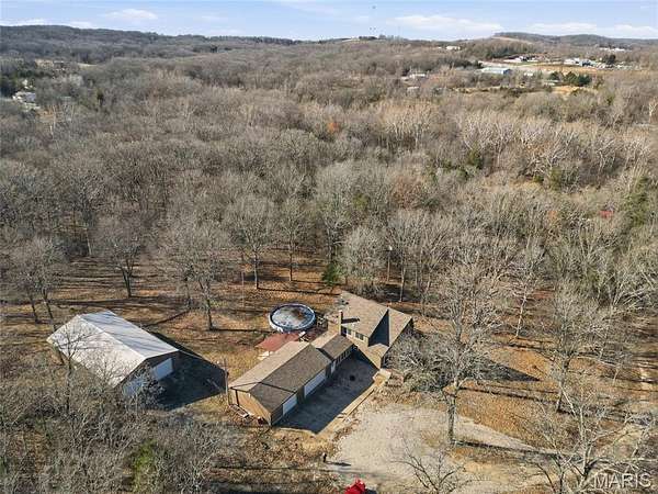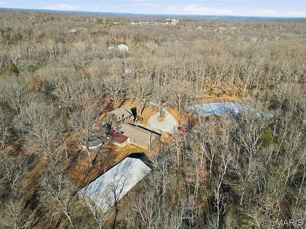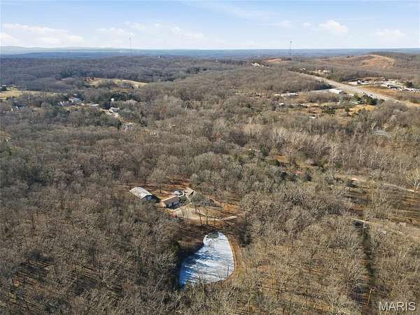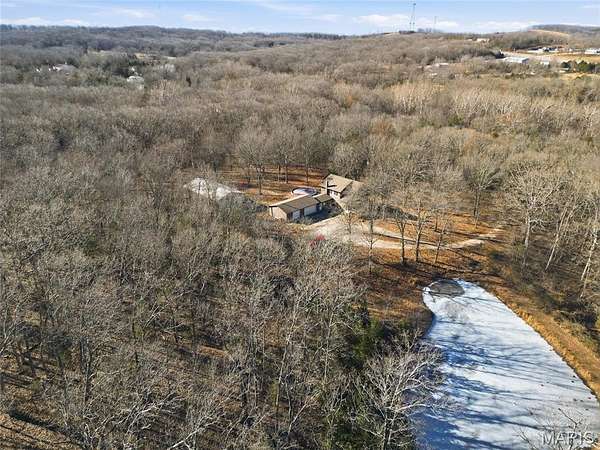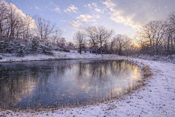 A rare private retreat set on 15+ acres of woods with a fully stocked pond, offering exceptional seclusion and abundant recreational opportunities--yet just 50 miles from downtown St. Louis.