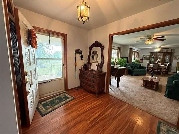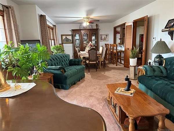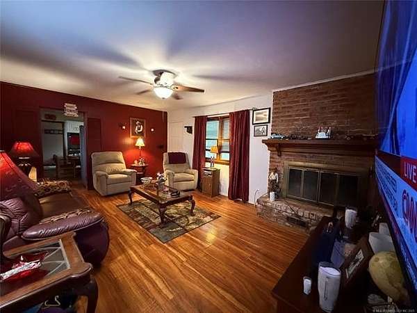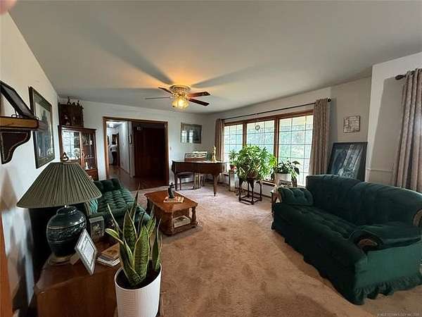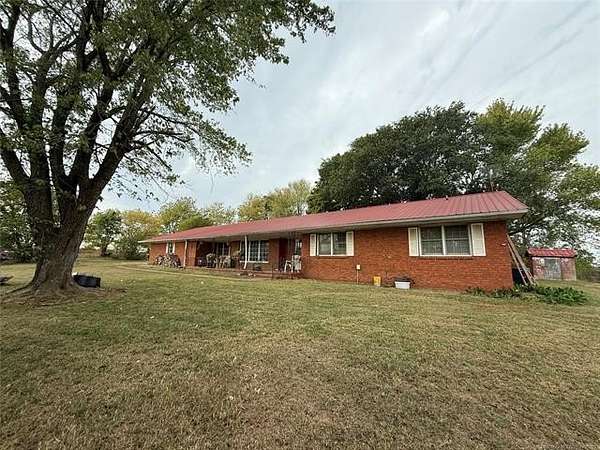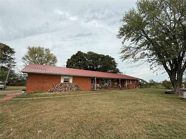 Beautiful views from an Oklahoma hillside, this brick ranch home setting on 40 acres has a lot to offer. The home has large rooms and lots of storage. There is lots of room for entertaining with a formal living and dining and the den having the wood fireplace gives you that cozy homey feeling. The land has a large barn and 2 ponds. The home is maintained but dated, come take a look.