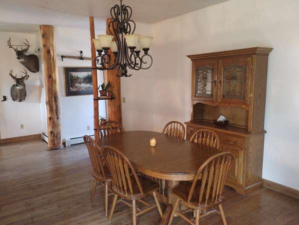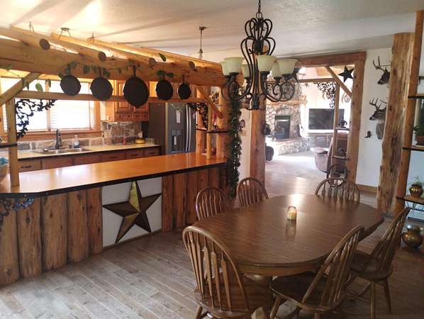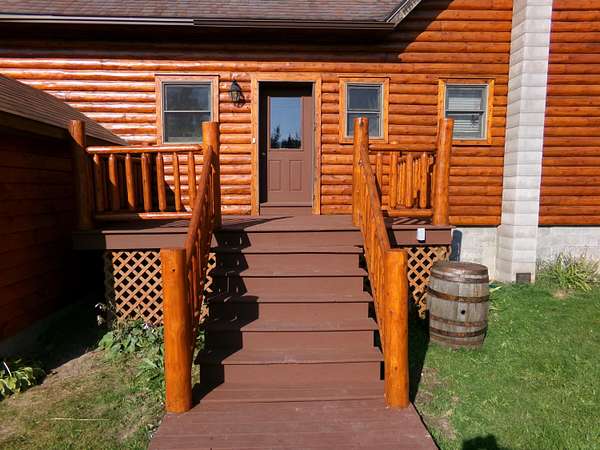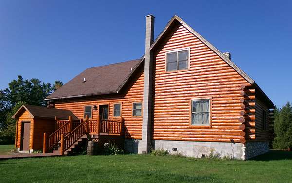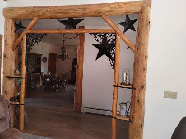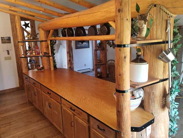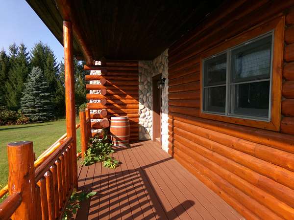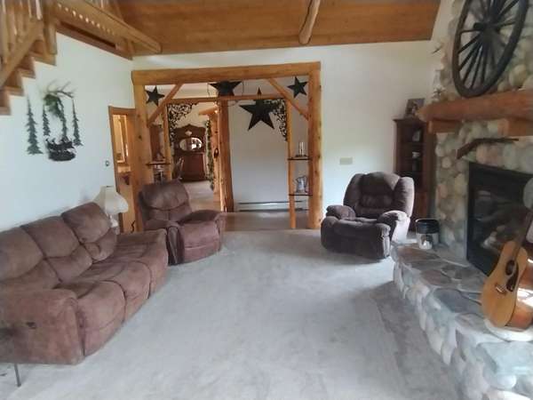 Welcome to this breathtaking log home nestled on 7 private acres, offering the perfect blend of rustic charm and modern comfort. With 3 bedrooms, 3 baths, and a spacious open floor plan, this home is designed for both relaxation and entertaining. The heart of the home is the gourmet kitchen, featuring a massive 12-foot tiki bar island, stylish tile backsplash, and newer stainless-steel appliances. The living room showcases a soaring cathedral ceiling, highlighted by a magnificent fieldstone gas-log fireplace and a grand wooden staircase and wrought iron accents for a touch of sophistication. The finished basement expands your living space with a large family room, ideal for guests, entertaining, or even rental options. Only eleven miles from Alpena. See private remarks A high-efficiency Weil-McLain boiler, complemented by a supplemental wood furnace, keeps the home warm and efficient year-round. Outside, you'll be greeted by a welcoming wooden arbor and the charm of a split-rail fence surrounding the property. Enjoy the fruit trees including black cherry, red cherry, apple, and pear that add to the homestead feel. A convenient lean-to provides extra storage, making this property as functional as it is beautiful.