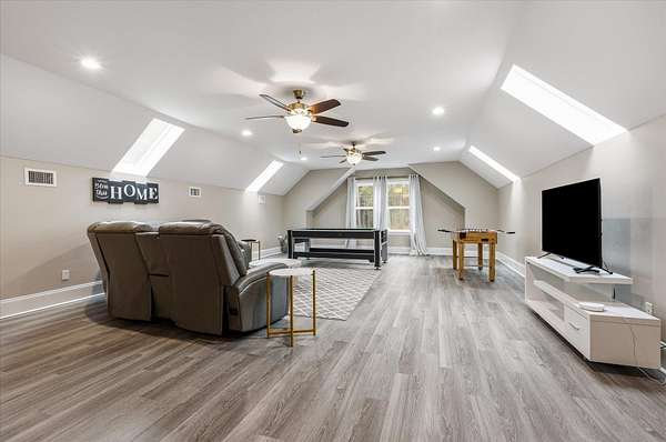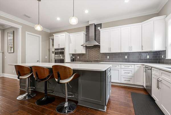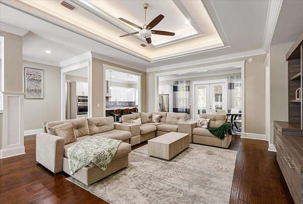 Prepare to be truly impressed by the exceptional craftsmanship, scale, and thoughtful functionality of this one-of-a-kind custom estate at 9901 Waters Meet Drive. Designed for the modern family or multi-generational living, this home offers the perfect balance of elegance and everyday practicality. Featuring 6 spacious bedrooms, 4 full baths and 2 half baths, soaring 9- and 10-foot ceilings, and premium finishes throughout, every detail has been curated with comfort and quality in mind. At the heart of the home is a chef's kitchen complete with quartz countertops, stainless steel appliances, a wine cooler, expansive cabinetry, and a walk-in pantry. Custom closet systems and built-ins add elevated storage solutions throughout the home. Enjoy the rare advantage of a full basement-level storage area, and a massive bonus room already plumbed for a future wet bar-ideal for a game room, theater, or private guest retreat. Step outside to your oversized screened porch, featuring a cozy fireplace and mounted TV-an inviting space to relax year-round while surrounded by peaceful privacy. Additional highlights include hand-scraped wood floors, a 3-car side-entry garage with its own bathroom. This is more than a home... it's a lifestyle built to accommodate generations, gatherings, and the moments that matter most.