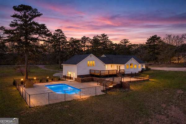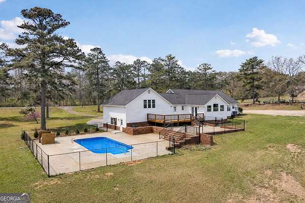 *Perfect blend of luxury indoors and mini-farm outdoors*Introducing 9902 Hwy. 16, a masterpiece in design and rehab with something for everyone in this property. Incredible location only 5 minutes to downtown Senoia, enjoy this sprawling 6+ acre property and all that comes with it! This 5 bed/3bath home boasts a DESIGNER farmhouse on the inside, pool and tons of entertainment space on the outside, PLUS detached garage/workshop, 4300+ square foot pole barn footprint, tons of yard space for animals or outdoor toys, AND a gentle creek to boot! Come inside through the OVERSIZED rocking chair front porch, into the open living area, and immediately gravitate towards the luxurious kitchen and coffee/wet bar. HUGE ISLAND, tons of cabinet space, white subway tile backsplash compliments the QUARTZ COUNTERTOPS perfectly, large windows, and stainless steel appliances are all featured in your spacious kitchen. The master retreat is one to behold with elevated views of the peaceful land outside, built in office nook, MASSIVE WALK-IN CLOSET, and dramatically beautiful master bathroom! There are 4 additional bedrooms and 2 additional full bathrooms to customize to fit your needs. Head outdoors to the large back porch and multi-tiered entertainment areas perfect for hosting parties, friends, or enjoying a relaxing day at the pool. The beautiful land in the back is fenced in and ready for horses, goats, cows, or simply enjoy the acreage with your motorized toys. This property truly has something for everyone. You won't find a more versatile property and only 5 minutes to all downtown Senoia has to offer!