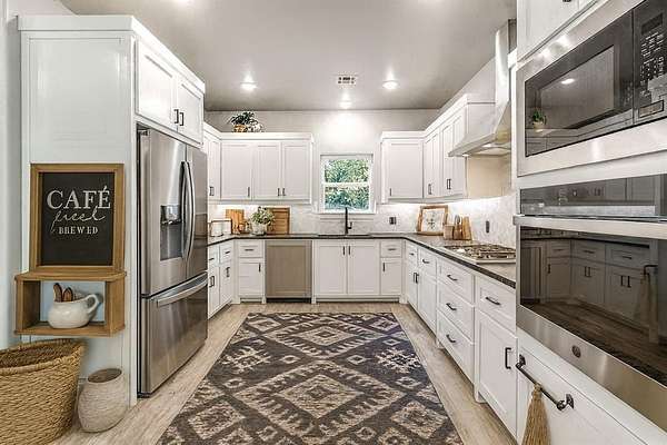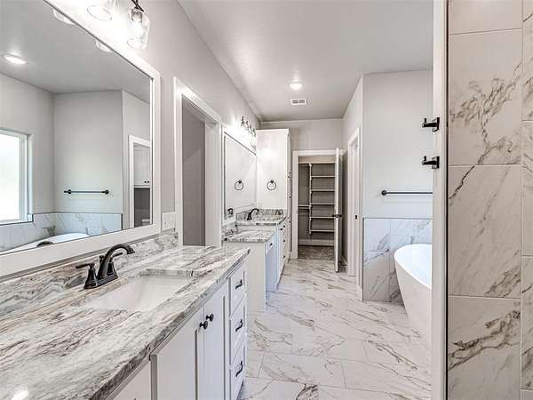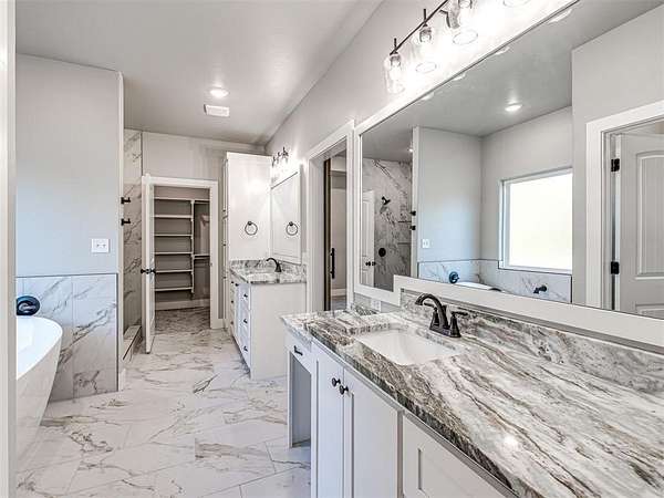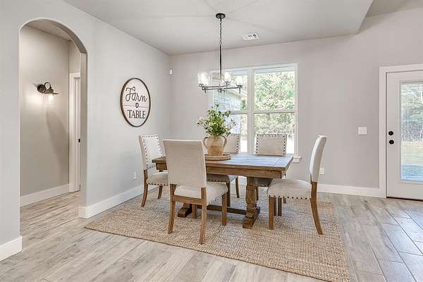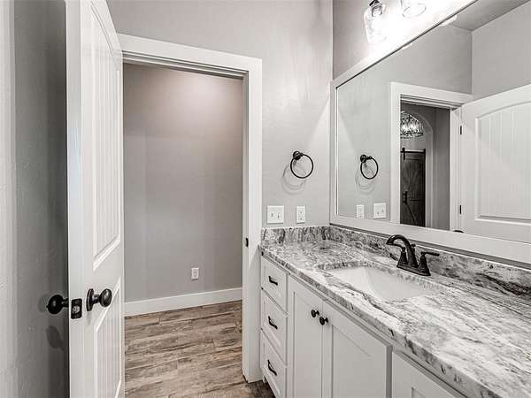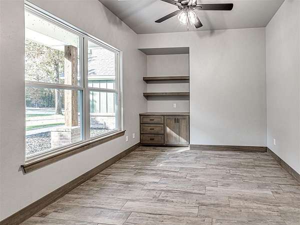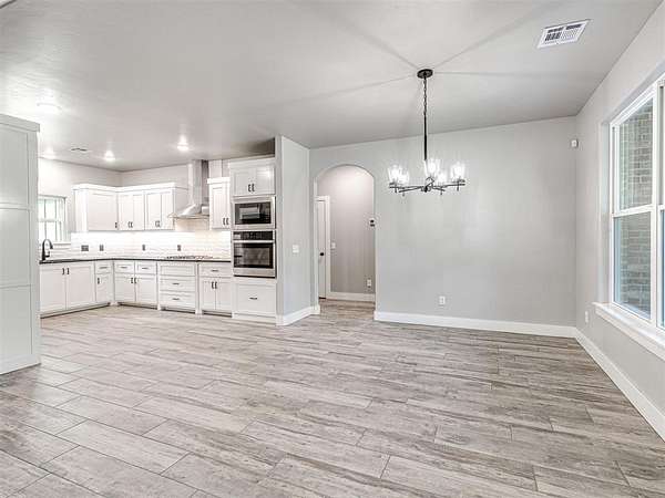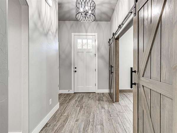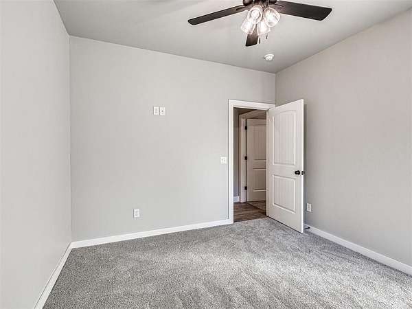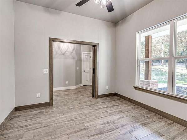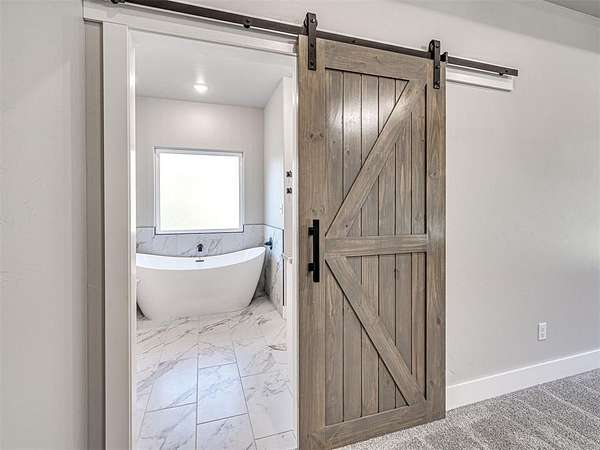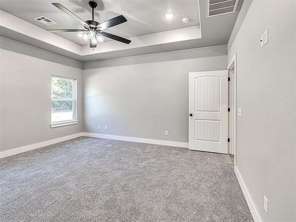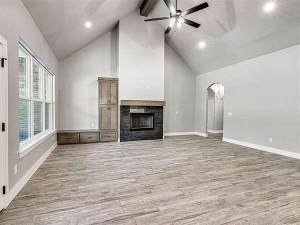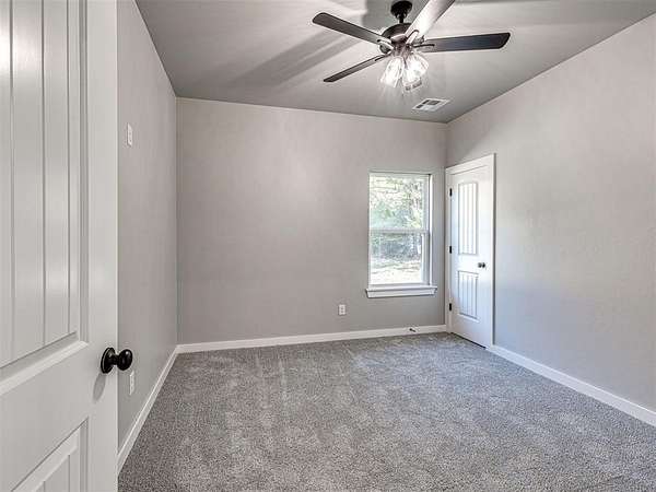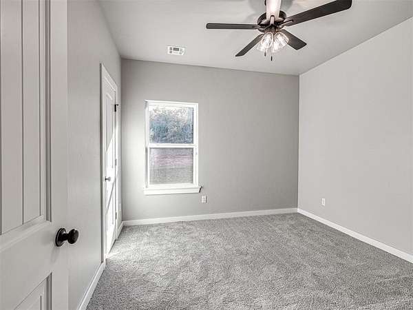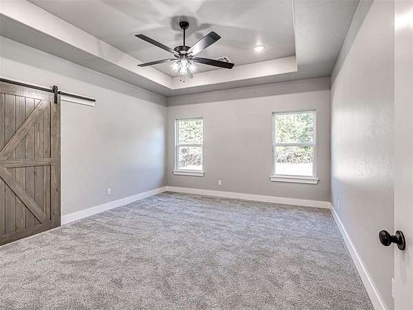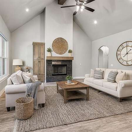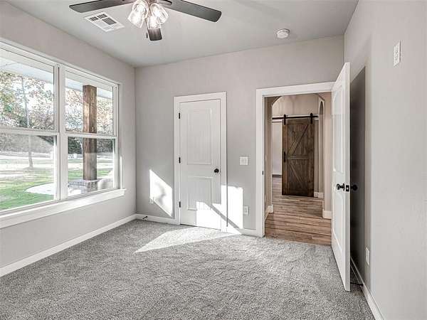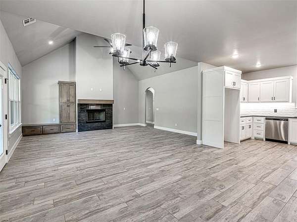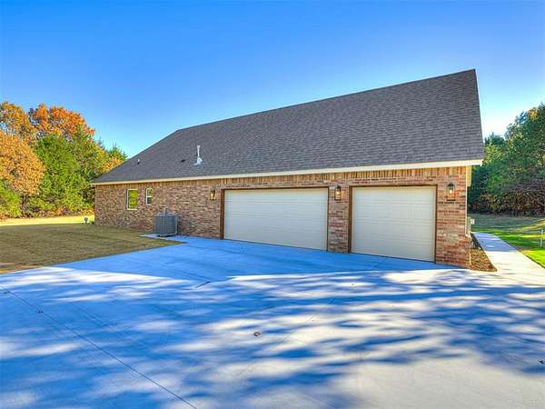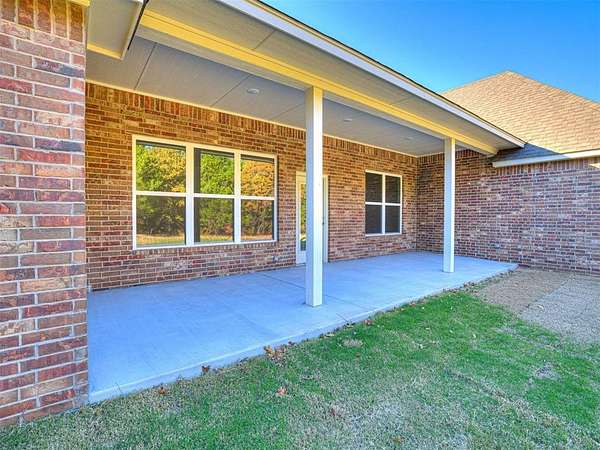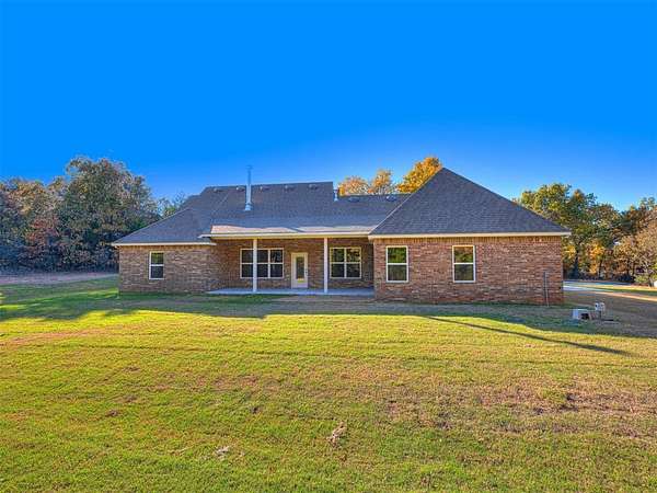 Nestled in the tranquil countryside of Harrah, this brand-new home designed for those who appreciate peace, space, and refined comfort. Set on approximately 3 1/2 acres, this property offers a serene escape surrounded by gentle trees and open skies, where you can often spot deer and other local wildlife. The home's modern layout features soaring cathedral ceilings, an open living area anchored by a cozy fireplace, and a seamless flow between spaces ideal for both entertaining and everyday life. The kitchen showcases quality craftsmanship and contemporary finishes, while the primary suite provides a luxurious retreat with a soaking tub, a spacious walk-in shower, and dual closets. Outside, you'll enjoy the quiet rhythm of country living with plenty of room to garden, play, or simply relax. Despite its secluded feel, the location is conveniently close to the turnpike, allowing quick access to Oklahoma City and nearby communities. At Hickory Grove Trail, you'll discover a perfect combination of rural charm and modern ease-where comfort, style, and nature come together beautifully.