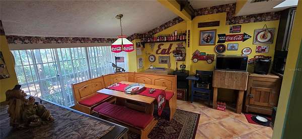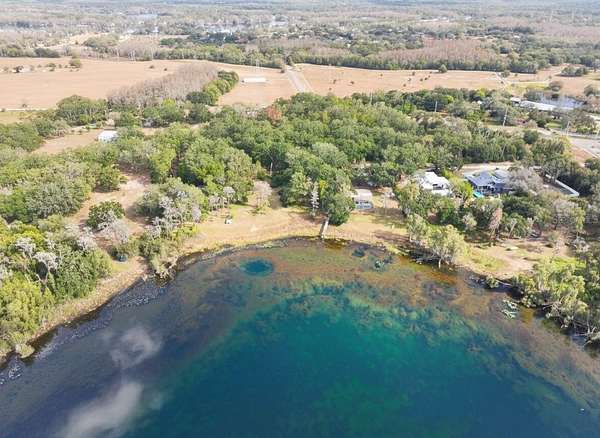 At the rear of the property sits a 3-bedroom, 2-bath lakefront home on just over an acre, overlooking an approximately 18-acre spring-fed lake with a 70' dock. Wake up to shimmering water views, soaring oak canopies, and the quiet beauty of nature unfolding outside your door. There are very few homes on this lake. Even if you chose to preserve the land exactly as it stands today--with its natural foliage, wild-grown plant menagerie, and majestic trees--this property alone is an extraordinary slice of paradise in paradise.
