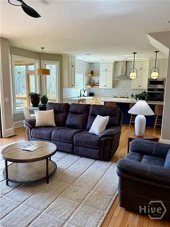 New Improved Price! Country Charm meets Modern Comfort-Mountain Living at its Best! Welcoming covered front porch invites you into this 4-bedroom 4.5 bath home with full finished basement. Horse haven with a 3 Stall Barn with tack room, covered concrete pad and water and electricity nestled on 2.65 acres. Pastures are completely fenced and can be separated by gates (3) Main level of home has been totally remodeled with modern features and a decorator's touch! Entertainer's dream kitchen with custom cabinets, tile backsplash, Farmer's sink, Milano Quartzite countertops, custom floating shelves and 9' island with seating for 6 of your favorite guests! Butler's pantry with custom cabinets, Milano Quartzite countertop, open shelving and pull-out drawers. Cozy up to custom linear fireplace, television enclosure with articulating arm, cabinets and shelving surround. 96x96 Accordion doors to screen porch frame rolling hills like a piece of art. Find serenity in your master suite on the main level. Exterior access to private deck. Master bath spa like upgrades including free standing soaking tub, tiled shower and dual vanity. Second level with 2 Bedrooms sharing jack n jill bath plus guest bedroom with private bath. Laundry with cabinetry and stackable washer and dryer (available for purchase) Updated powder room. Full finished basement with full bath possibilities are endless. Wood working shop with power equipment you will want to purchase! Too many upgrades to list but to name a few: Barn has 42- 900W solar panels with 2 inverters (bought and paid for). Power is run underground and supplements electric bill. All new flooring on main level, 2nd level and basement freshly painted, gas generator (available for purchase), 250 electric car charger, RV pad at barn and so much more!. Unique opportunity for slice of heaven in North Georgia Mountains.
