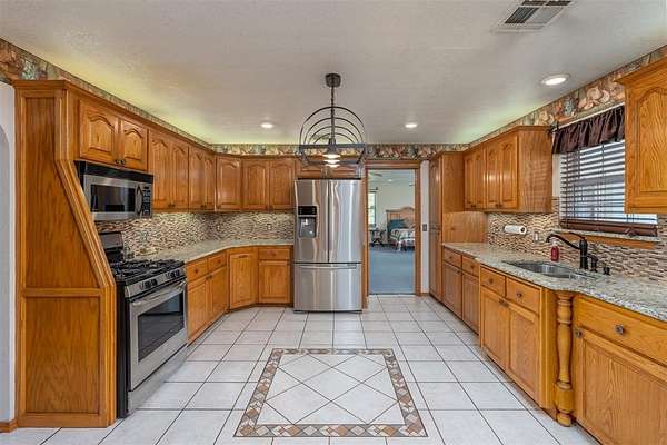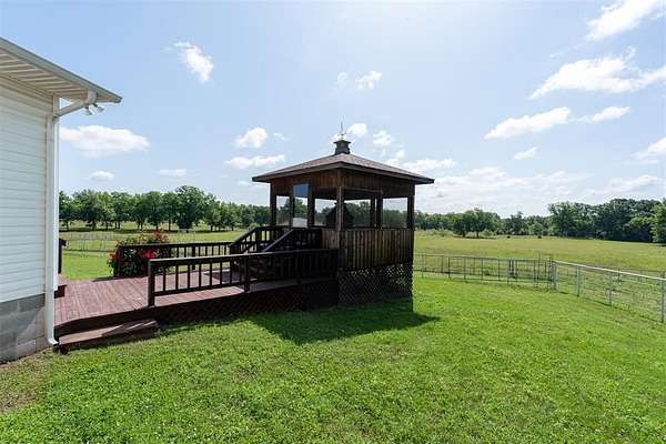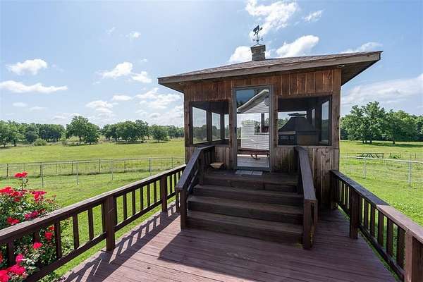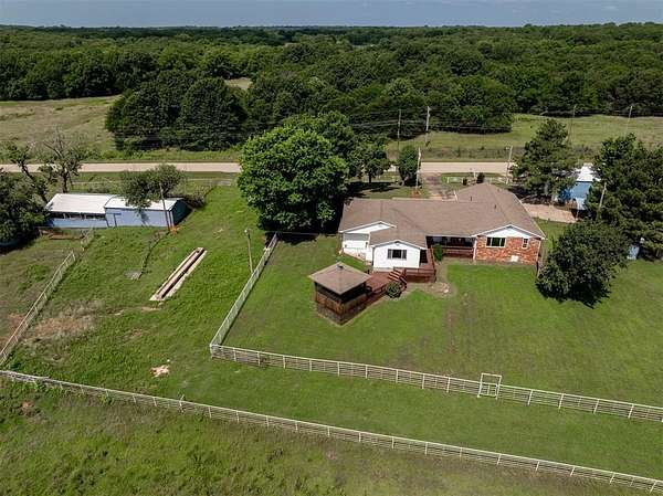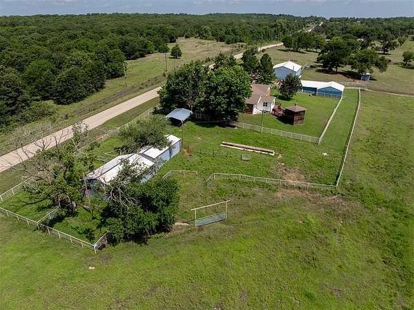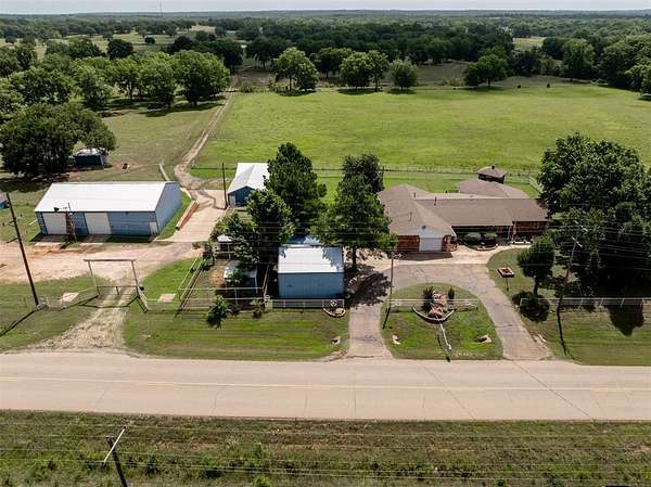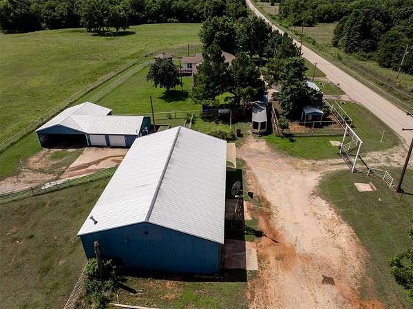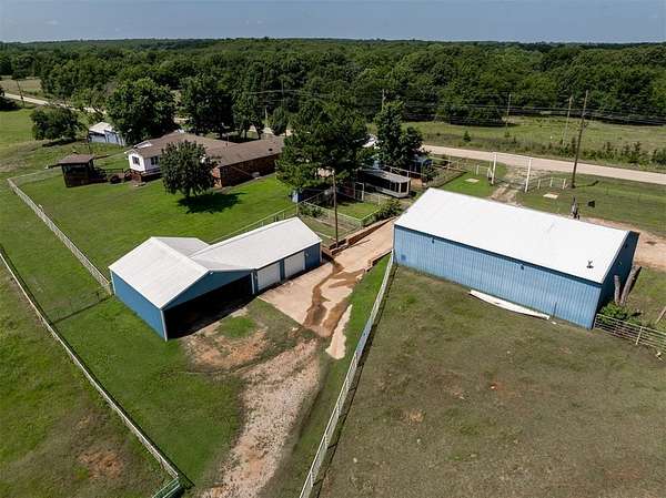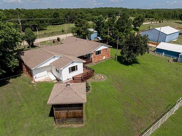 Premier 215-acre m/l working cattle ranch, perfectly designed for efficient livestock management and peaceful country living. Fully fenced and cross-fenced into 40-acre pastures, each pasture is equipped with freshwater access, its own pond, and cement feed bunks--making rotational grazing seamless. A central, fenced lane runs through the property, connecting each pasture and leading directly to the covered working pens, which has an alleyway with tub and working chute with convenient access to the county road for easy loading and unloading. This property includes two high-output water wells, ensuring reliable water for both household and ranching needs. The land is primarily open pasture with scattered mature hardwoods, and 7 ponds--offering picturesque views and ample water supply for livestock. The residence is a very well-maintained 3 bedroom-remodeled in 2010, 2.5 bath home with quality finishes, including granite countertops, two spacious living areas, a large utility room, and an attached garage. Step outside onto the back deck and in the screened-in pergola overlooking serene pastures and expansive ranch views. The home is equipped with a 20kW Generac generator and powered by private natural gas, providing substantial savings on energy costs. In addition to the main home, the ranch features a range of multiple outbuildings and shops, including: A 40' x 60' main shop with two 12-foot overhead doors--ideal for large equipment storage. A separate garage and equipment shed offering abundant covered storage. Whether you're expanding a cattle operation or seeking a country retreat with income potential, this ranch delivers the perfect balance of functionality, beauty, and location. Guest quarters with approximately 800 square feet, complete with a full bath--perfect for visitors, a home office, or business use. For those seeking even more, an additional adjoining 40-ac tract with another home, shop, in-ground pool, and arena is also available for purchase. MLS#1177099
