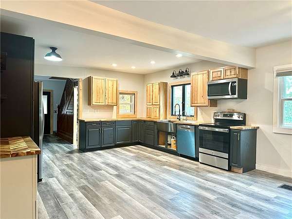 Step into country charm with this 1900's farmhouse on 8+ picturesque acres. Featuring 4 spacious bedrooms and 2.5 stylish baths, this home blends timeless character with many modern upgrades including newer roof and furnace, new kitchen and baths, windows, plumbing, electric, flooring, hot water tank, water filtration system, and more. Large, open kitchen and dining area, 1st floor laundry, bonus 1st floor room would be ideal for 5th bedroom, home office, den, playroom, craft room, or an exercise room. There's even a walk-up attic space perfect for storage. Some trim and finishing work needed in places, but it's perfect for hobby farmers and gardeners looking for peaceful rural living. Bring your chickens, pigs, goats, and ATV's and start enjoying this wonderful property!