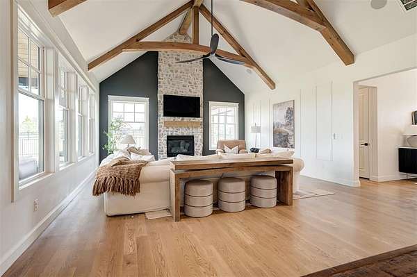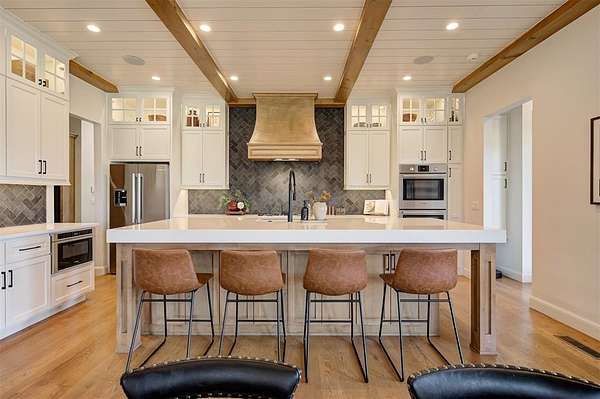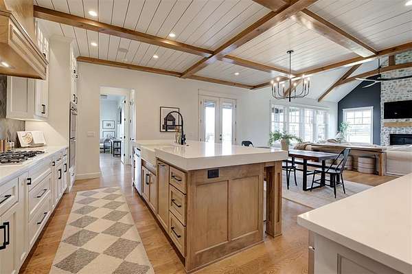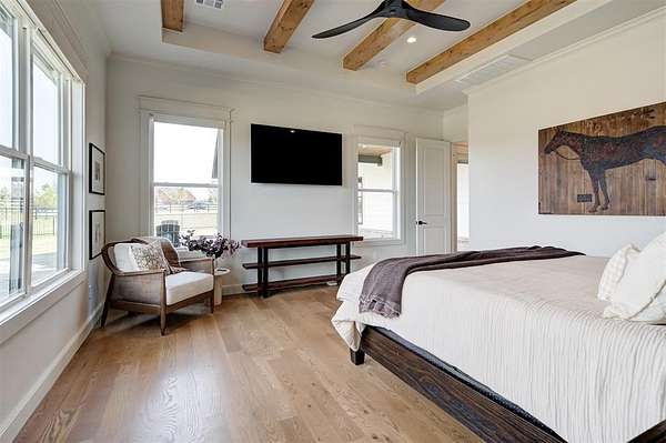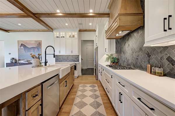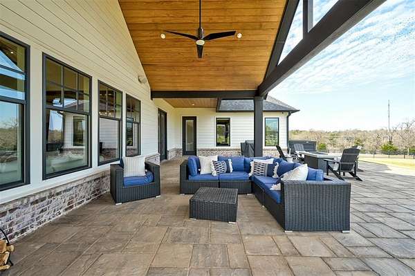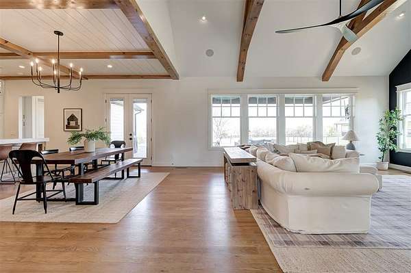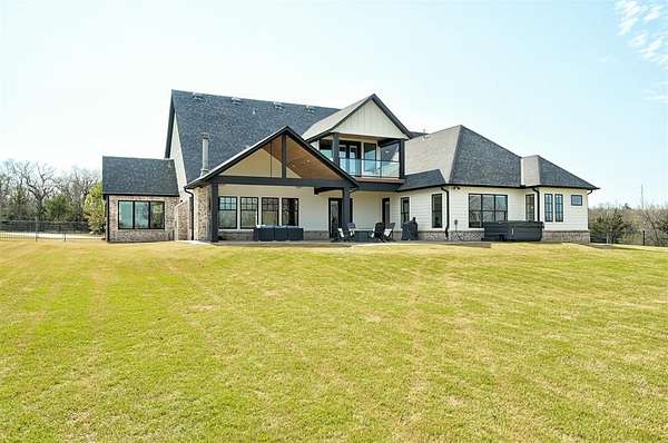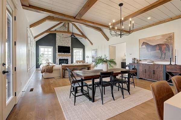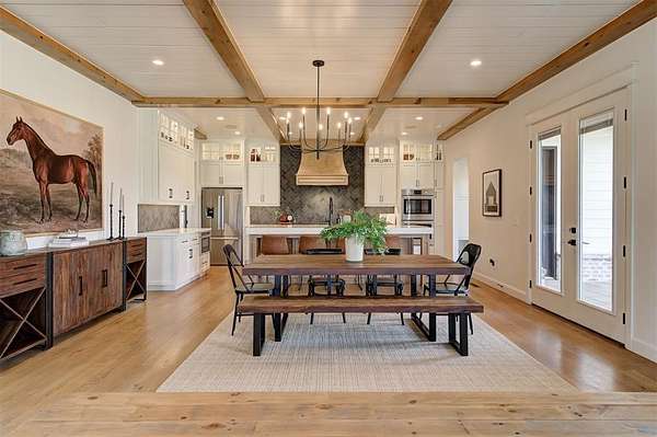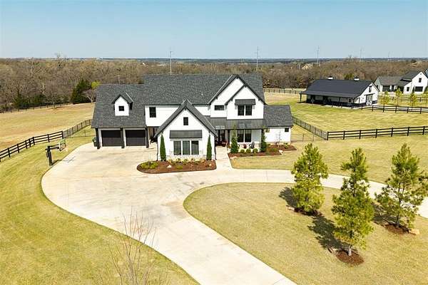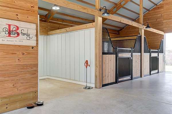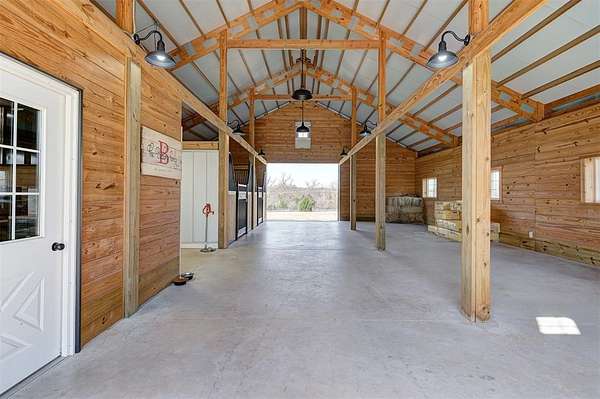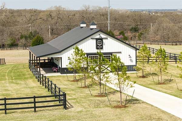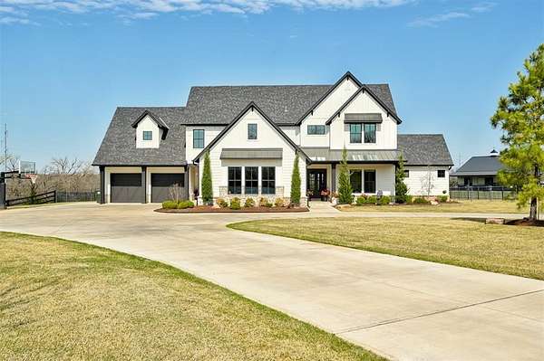Horse Property on almost 5 Acres | Edmond Schools | Gated Cul-de-Sac Located in Jones, Oklahoma and within the Edmond Public Schools district, this custom-built home offers 5 bedrooms, 4 bathrooms, and just under 5 acres in a private, gated cul-de-sac setting. Designed with both functionality and style in mind, the home features vaulted ceilings, exposed wood beams, wide plank flooring, and a stone fireplace that anchors the main living space. The open-concept layout provides seamless flow between the living, dining, and kitchen areas-ideal for everyday living and entertaining. The kitchen includes custom cabinetry, a large center island with seating, designer lighting, and ample workspace. The primary suite offers a spacious layout with a well-appointed bathroom featuring a soaking tub, separate shower, and dual vanities. Additional bedrooms and bathrooms provide flexibility for a variety of uses. This horse property includes a custom Morton Buildings barn with European-style stalls, center aisle, and quality construction details. Per community guidelines, the property is approved for up to two horses and one foal, supporting a range of equestrian uses. Residents have access to neighborhood amenities, including a community pool and fishing pond, while enjoying the added space of acreage living. A planned turnpike access point approximately one mile away (anticipated 2027) may enhance connectivity to Edmond and Oklahoma City. A unique opportunity to own a property that combines acreage, equestrian features, and a convenient location.
