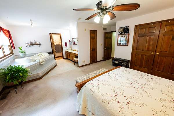 - Cathedral Ceiling(s), Ceiling Fan(s), Central Vacuum, Crown Molding, Double Vanity, Eat-In Kitchen, Entrance Foyer, Granite Counters, High Ceilings, Kitchen Island, Multi Panel Doors, Natural Woodwork, Pantry, Recessed Lighting, Soaking Tub, Track Lighting, Walk-In Closet(s), Wet Bar