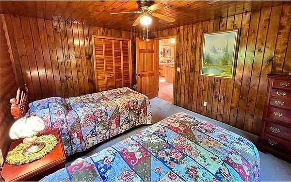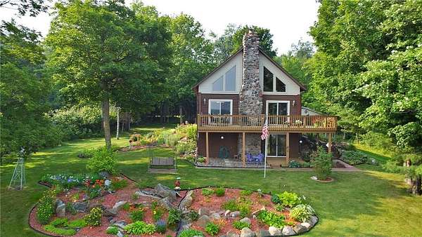 This rare well loved and meticulously cared for property boasts over 6 acres and 120+ feet of north facing level shoreline along highly sought after Borden Lake. The home is well built and offers a loft-style year-round cabin that was designed with lake views in mind ... you'll appreciate the wraparound deck, sliding glass doors, huge lakeside windows and beautiful vaulted ceilings providing panoramic views from almost anywhere! There is an authentic Up-North feel with an open living room, dining room and kitchen layout. The centrally appointed wood-burning fireplace will make you feel right at home all year long. Stay extra warm and cozy when you cuddle up next to the beautiful stone fireplace that is ready for use. Oversized unfinished basement offers a clean, dry location for a large laundry room, workshop space and lots of open storage. This is a great opportunity to finish how you want, add bedrooms or make a large family or game room.