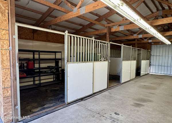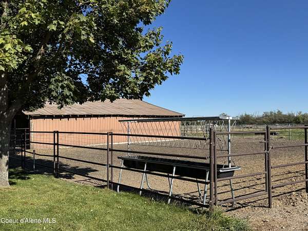 Great horse property on 4.84 irrigated acres. Minutes to I-90 at Stateline. Nice 1,404 square-foot three-bedroom two bath modular home with open floor plan breakfast bar, jetted tub, and central air. Large, landscaped yard with sprinkler system, a 50 x 52 hay barn, and a 30 x 48 barn with four stalls/bathroom/tack room, riding arena, hen house, rv hook up, and several water hydrants. Irrigation is consolidated irrigation district. Agent related to Owner/Seller. Buyer to verify all property details before closing.