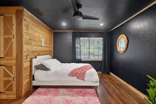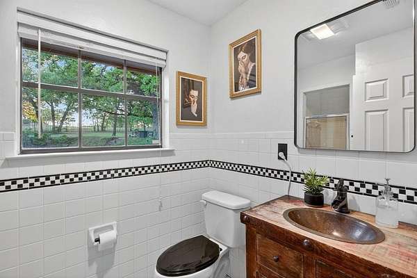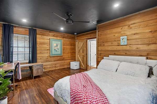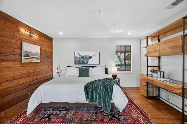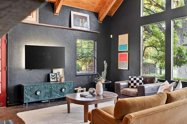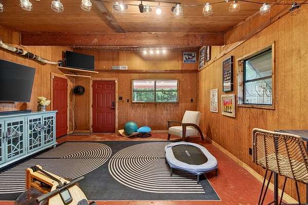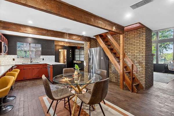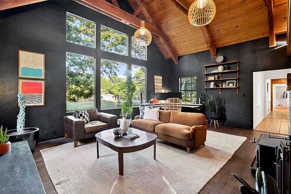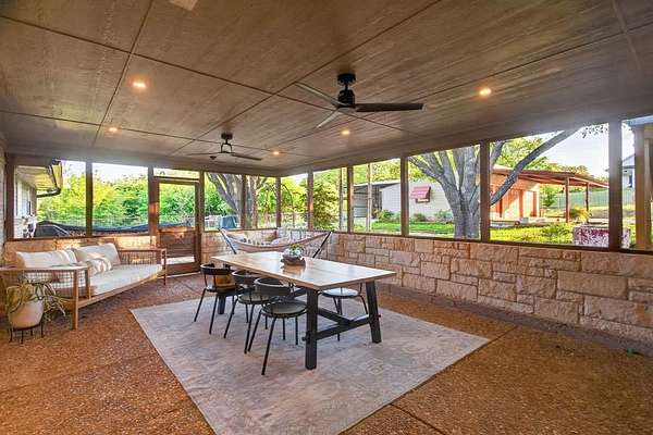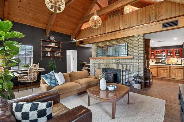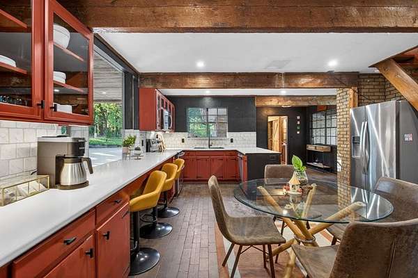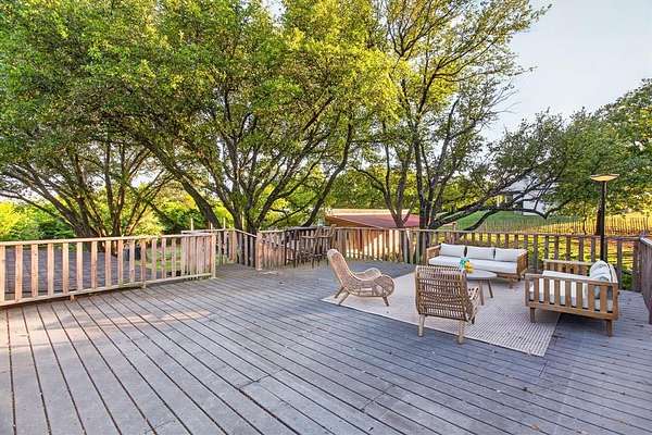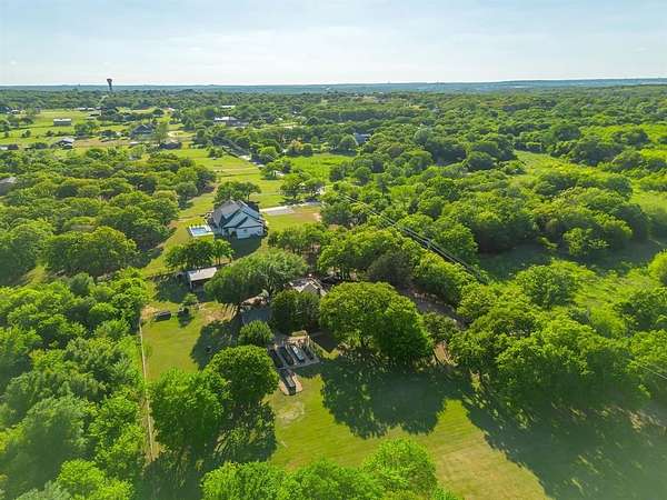 Extraordinary opportunity to own a true homesteader's dream in the peaceful countryside of Burleson, Texas! Over 5 acres of remarkable land: exquisite shade trees, lush pasture, perimeter fencing, and the character you hope for in details like a rustic windmill, a rosemary-lined chicken yard, and a seasonal creek bed. The residence sits shaded and private with multiple porch and patio spaces for intimate moments as well as large gatherings. Most notable among these is the expansive upper deck above the covered parking area connected to the interior's loft - and the covered, partially enclosed patio below that begs to make al fresco dining a nightly occurrence. The interior boasts a smart and stylish fusion of bold, modern finishes with rustic, primitive flair cherished in this kind of home. The kitchen was blown wide open while maintaining the brick-laid flooring that runs throughout the common spaces; the living area enjoys stunning tree-ensconced views through massive windows up to the wood-paneled vaulted ceiling. The grand wood pellet brick fireplace naturally centers the home. Secondary bedrooms enjoy personality and a fun full bathroom opposite the sumptuously scaled primary suite with a surprisingly large walk-in closet and laundry area. Don't miss the dreamy loft or the charming pantry screen door. New LED recessed lighting, ceiling fans, fixtures and paint modernize each space. Outside: a 1600+ gallon water cistern irrigates raised metal garden beds prepped with fill; the two car garage with awning hides a huge 'bonus space' perfect for a gym or home office (on its own meter, too); the 24x24 open pole barn is your catch-all; more storage and opportunity awaits in yet another 24x24 workshop. Roof replaced 2024 with guarded gutters; Lennox dual-zoned HVAC in 2025; extra exterior outlets installed; mounted, retractable hoses. And available to you: the master plan commissioned for the home and the land. Already exceptional with untapped potential.