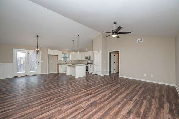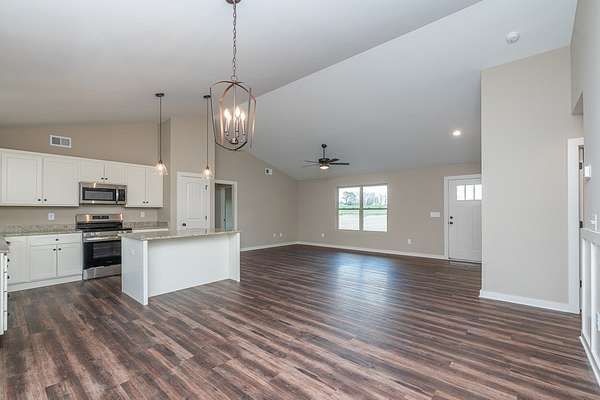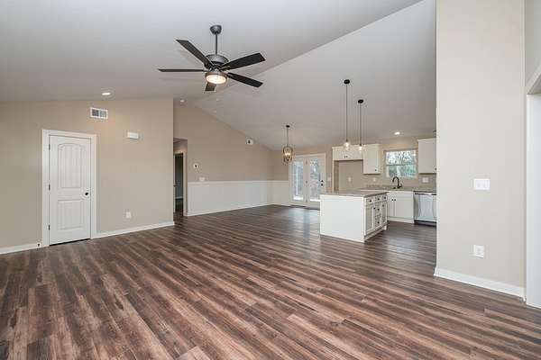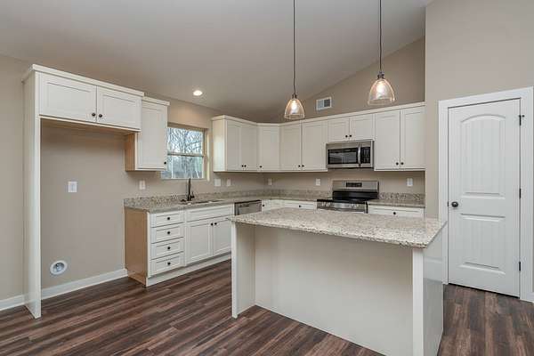 This charming home, situated on over 2 acres of land, offers an exceptional opportunity for those seeking space and freedom with no HOA restrictions. An additional 25x20 detached two-car garage provides a total four-car capacity and is ideal for storing a boat, camper, or creating the perfect workshop. The expansive driveway offers ample parking, making it perfect for gatherings or multiple vehicles. Inside, luxury LVPflooring flows throughout the home, providing both durability and modern style. The vaulted ceiling enhances the open living area, creating abright and spacious feel. The well-appointed kitchen features stainless steel Frigidaire appliances, granite countertops, and abundant cabinetry,making meal preparation both functional and enjoyable. The home offers three bedrooms, including a generously sized owner's suite that servesas a private retreat. The suite includes a full bath with a walk-in shower, double vanities, and a large walk-in closet. Additional highlights includesa spacious laundry area and a rear patio ideal for grilling and enjoying outdoor activities. With its desirable features, generous space, and attractive price point, this home is move-in ready and waiting for its next owner. Don't miss the opportunity to make it yours!