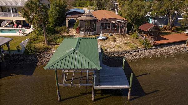 Enjoy a private covered boat dock with a 10,000-lb lift providing direct access to the Alafia River. Perfect for boating, fishing, kayaking, jet skiing, and more. The property also features an RV carport and gazebo, ideal for relaxing or entertaining by the water.