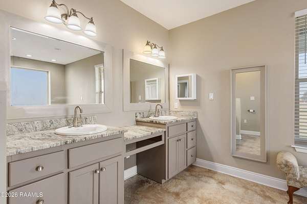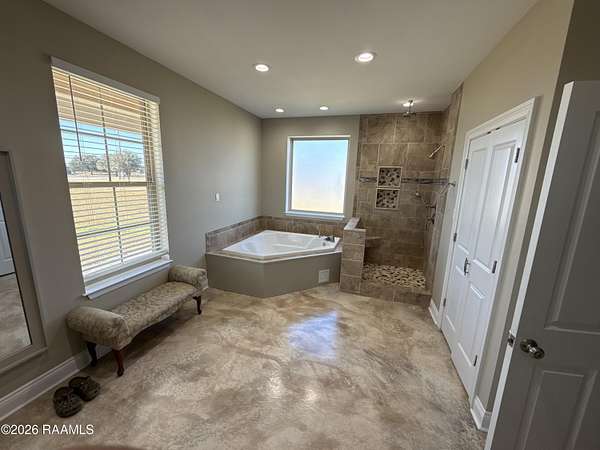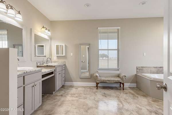 - 9+ ft Ceiling, Beamed Ceilings, Bookcases, Built-In Features, Built-Ins, Cathedral Ceiling, Cathedral Ceiling(s), Crown Molding, Double Vanity, Garden Tub, Granite Counters, High Ceilings, Multi-Head Shower, Primary Bath, Separate Shower, Special Bath, Varied Ceiling Heights, Walk-In Closet(s), Whirlpool