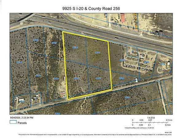 Est $2,254/mo22 Acres with approx. 900' of frontage on the south side of Interstate 20 at the west interchange. Located just west of the Freedom RV Park, convenient to truck stops and restaurants, across I-20 from industrial park. The property backs up to paved County Road 256 to the south with approx. 880' of frontage there. Includes 3 water wells with PVC casing, no pumps, that have been tested to produce 216 gallons of water per minute. City water line along frontage road. The potential is yours to imagine. Call 325-235-1762 for more information.