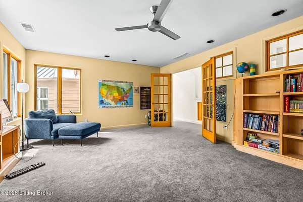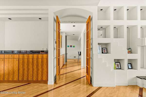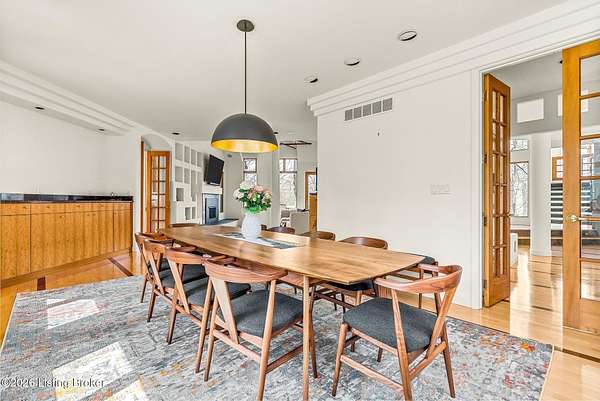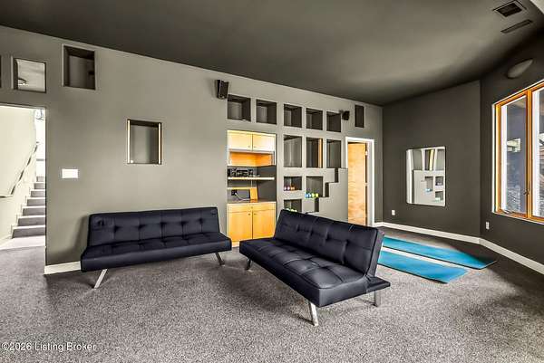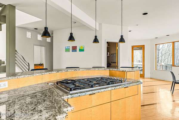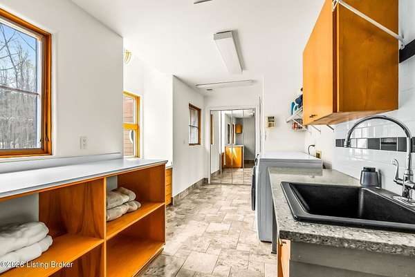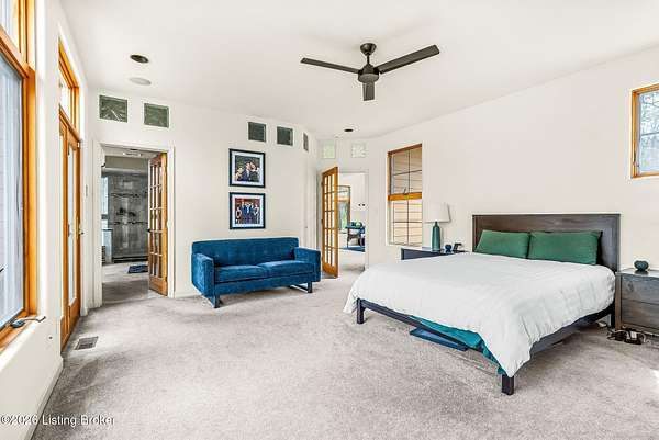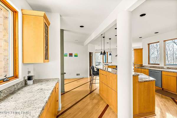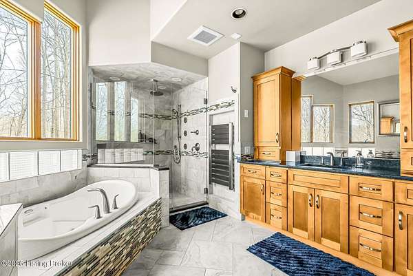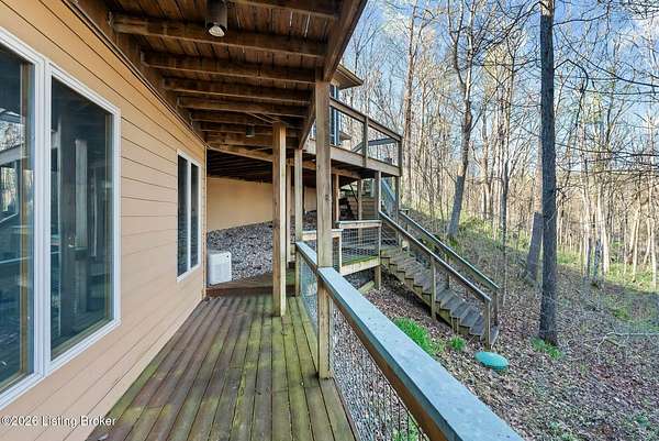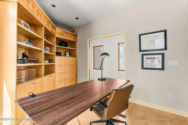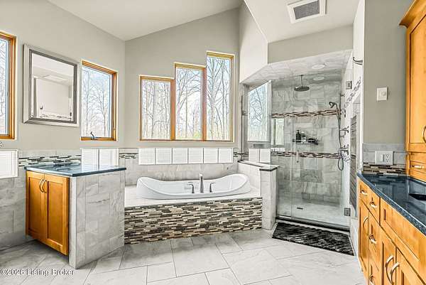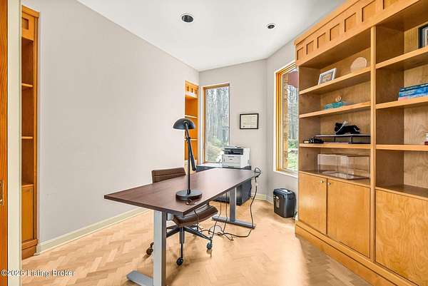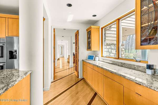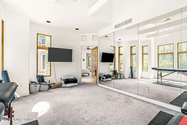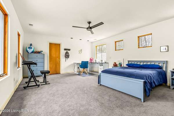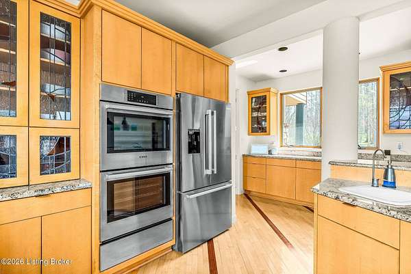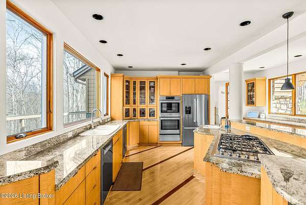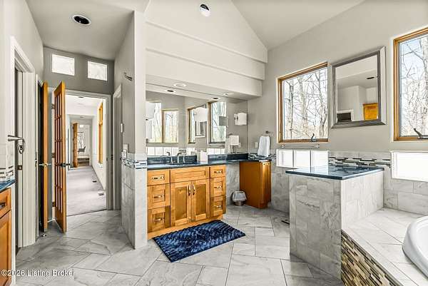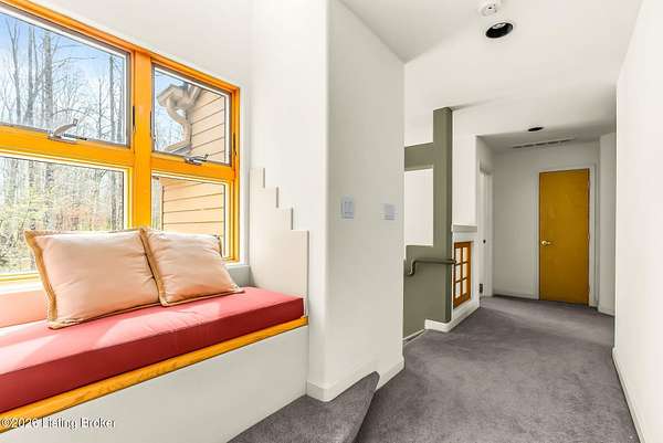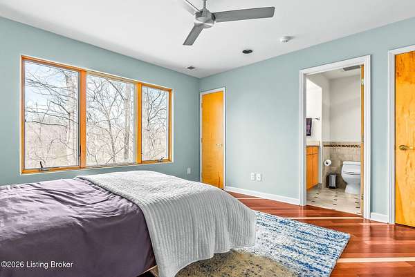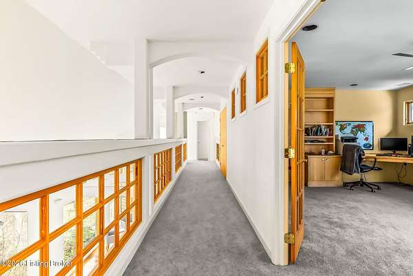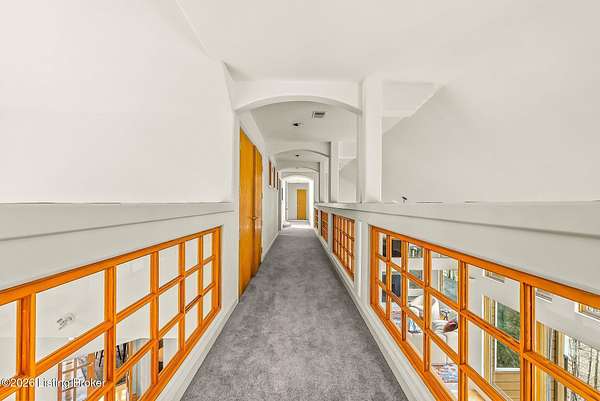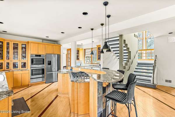 Welcome to an architectural masterpiece by architect Jim Peterson set on over 10 private, wooded acres overlooking the waters of Harrods Creek in highly sought-after North Oldham County, Kentucky. This one-of-a-kind residence seamlessly blends modern luxury with the serenity of nature, offering an unparalleled lifestyle defined by privacy, beauty, and thoughtful design. From the moment you arrive, the home captivates with its distinctive architecture and peaceful surroundings. Enhanced with state-of-the-art solar panels, the property offers exceptional energy efficiency without compromising comfort or style. Inside, the home features 4 spacious bedrooms and 7 elegantly appointed bathrooms. The first-floor primary wing serves as a true private retreat, complete with a spa-inspired ensuite bath featuring heated floors, a heated towel rack, dual vanities, a whirlpool tub, and a separate glass-enclosed shower. This luxurious suite is further complemented by a private exercise room and an in-suite home office, creating a sanctuary designed for both relaxation and productivity. The main level is perfectly curated for everyday living and entertaining. A grand family room flows effortlessly into the dining area, creating an inviting atmosphere for gatherings. The expansive, light-filled eat-in kitchen is equipped with new appliances, ample cabinet and counter space making it both functional and inspiring-ideal for everything from casual mornings to elevated entertaining. Upstairs, three generously sized bedrooms each feature their own private ensuite bathrooms, providing comfort and privacy for family and guests alike. A beautifully designed home library with custom built-ins and a dedicated study offers a quiet escape for work or leisure. Walls of windows throughout the home frame breathtaking views of the surrounding landscape, seamlessly connecting indoor living with the natural beauty outside. A screened-in porch invites you to relax and unwind while enjoying the tranquil setting in complete comfort. Additional features include a whole home water filtration system + whole-home generator for peace of mind, further enhancing the home's thoughtful design and functionality. This extraordinary property is a rare offering-where luxury, privacy, and nature exist in perfect harmony, all within one of Oldham County's most desirable locations.
