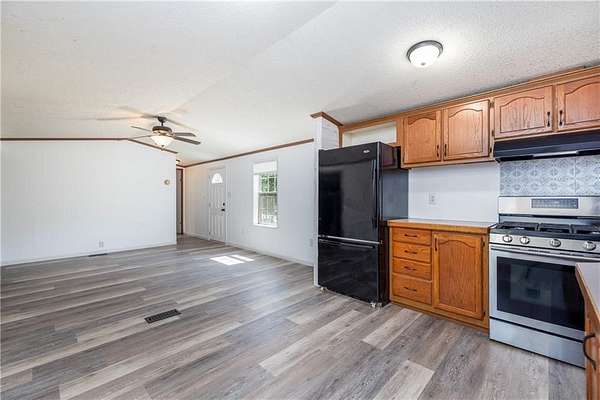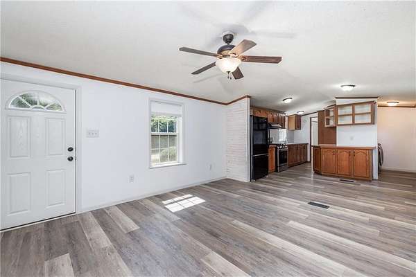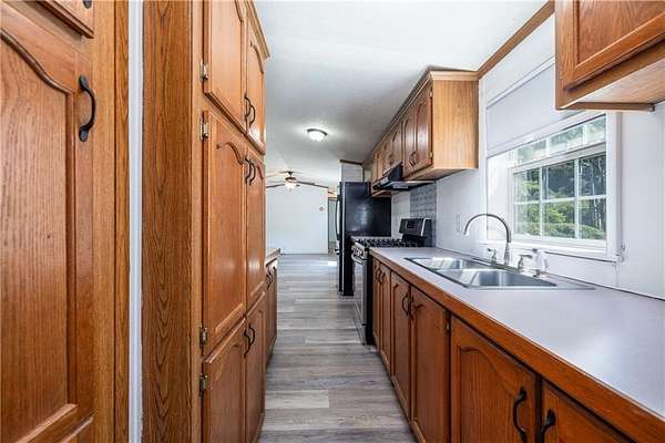 Private park-like setting on nearly 3 acres nestled in the beautiful Finger Lakes Region! Ideally located between Rochester and Corning, this property offers rolling hills, open green space, meandering Reynolds Creek (feeds off of Cohocton River) and a tranquil pond with a floating dock-perfect for nature lovers! Enjoy easy one-level living in this well-maintained manufactured home 1,276 sq ft (from Appraisal report-includes the family room) featuring an open layout with cathedral ceilings, oak kitchen with dining area and all appliances included. Step-down family room with wood stove and hardwood floors creates a cozy gathering space. Owner's suite includes a spacious ensuite bath with dual sinks. Updated second bath! Features include: updated vinyl plank flooring, skylights, cathedral & vaulted ceiling, 1st floor laundry with front load washer/dryer and outbuilding/garage/storage space add convenience and functionality. A peaceful retreat with endless charm and comfort! Septic inspected/pumped 9/2025. No sign on property at the moment.