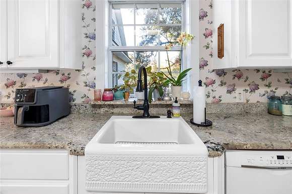 - Cathedral Ceiling(s), Ceiling Fans(s), Crown Molding, Eat-In Kitchen, High Ceilings, Primary Bedroom Main Floor, Solid Surface Counters, Solid Wood Cabinets, Stone Counters, Thermostat
