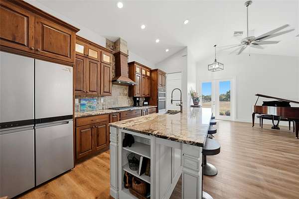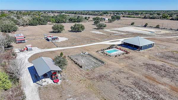 Welcome to the End Of The Road Farm. This is NOT a hobby farm. This is a turn-key, boots-on, coffee-on-the-porch, eggs-before-emails kind of property. Custom built in 2021 and lovingly owned by one owner, this 15-acre homestead is being sold mostly furnished, which means you can arrive with your suitcase and start living the life immediately. Let's start outside, because the land is doing the absolute most. You've got a livestock barn with power, a shipping container with power, A/C, and two generators, a 10x20 greenhouse with irrigation, multiple chicken coops including a brooder, and a well house featuring a whole-farm reverse osmosis system plus an outdoor shower. There's a massive 24x48 pole barn with RV hookup, the beginnings of a thoughtfully planned food forest with lemongrass, herbs, passion fruit, dragon fruit, and sea grape, a 40x80 irrigated garden, and so much open land it's currently used as a hay field. Add in a 2-acre pond, underground power, power run throughout the property, and Starlink equipment already in place, and this farm is built for real living, not just dreaming. And yes. The animals come with it. Four cows and over 30 chickens are already home. Now let's talk about the house, because it is absolutely the star of the show. The custom home features a gorgeous open floor plan with soaring ceilings that immediately make the space feel grand yet welcoming. The kitchen is a dream come true with hand-selected hickory cabinetry, granite countertops, and a classic farmhouse sink that fits the lifestyle perfectly. Three bedrooms and two bathrooms give everyone room to breathe, and the large utility room makes everyday life actually functional. The primary suite is a true retreat with two walk-in closets and a supersized bathroom featuring a walk-in shower with dual shower heads. It's the kind of space that makes mornings slower and evenings quieter. Then there's the backyard oasis. An inground heated pool, beautifully landscaped and surrounded by a large travertine pool deck, gives you a resort-level place to unwind after a long day on the land or to host unforgettable gatherings under the stars. This property isn't just a home. It's a vision already brought to life. If you've been waiting for a farm that actually works, one that's beautiful, intentional, and ready on day one, this is it. (There is so much more to love about this property and a full marketing brochure is available upon request.)