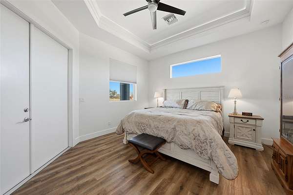 - Ceiling Fans(s), Eat-In Kitchen, Open Floorplan, Primary Bedroom Main Floor, Solid Surface Counters, Solid Wood Cabinets, Split Bedroom, Stone Counters, Thermostat, Tray Ceiling(s), Vaulted Ceiling(s), Walk-In Closet(s), Window Treatments