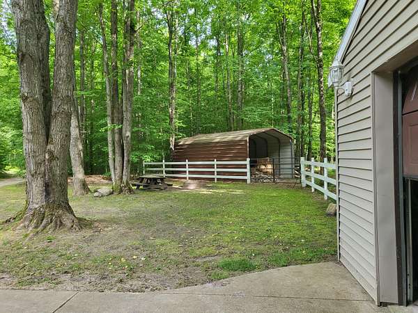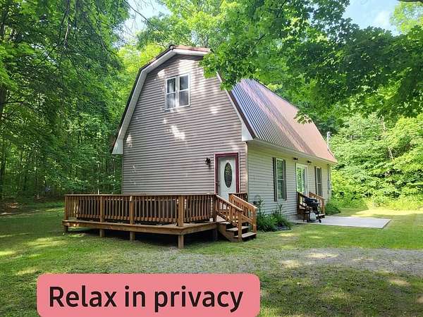 Do you love riding horses? Then you have to come see this amazing secluded VACATION RENTAL that is set up for bringing your horses & horseback ride in over 6000 acres of Grayling National Forest DIRECTLY across the street! Electric fence & run-in to keep your horses corralled. Featuring almost 23 acres with a roomy 1500 sq ft barn style home that has a newer metal roof, 2 bed/1 bath, big deck to relax in the shade & nice cement patio to BBQ on just outside the doorwall from the kitchen. Awesome high ceilings & open concept make it perfect for gatherings. This can be an investment, a primary, 2nd home or hunting camp. ALSO small rustic cabin on the 2nd (appr 10 acre) parcel that would be a good rustic hunting retreat- no well/septic. OR SPLIT THE ACREAGE into TWO 10+/- ACRE PIECES!