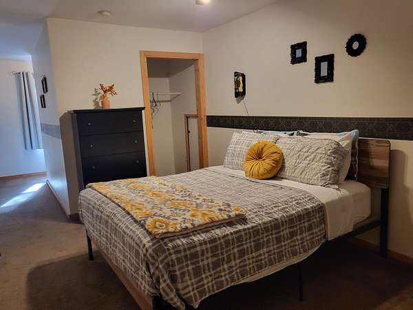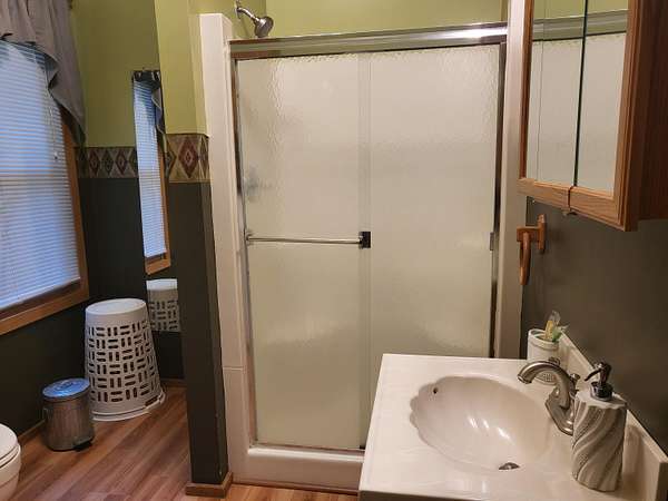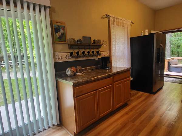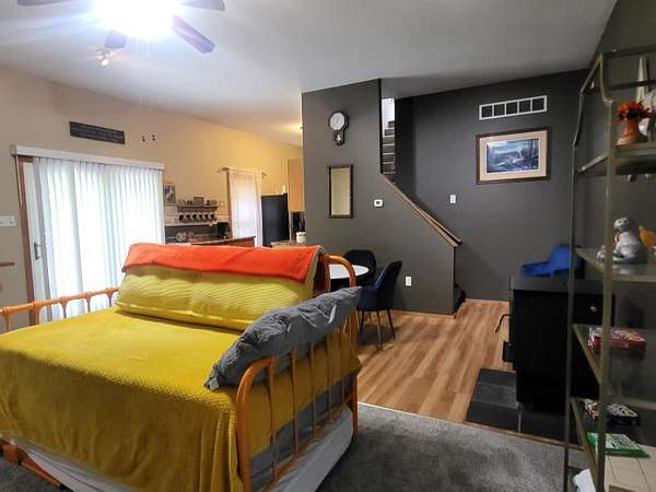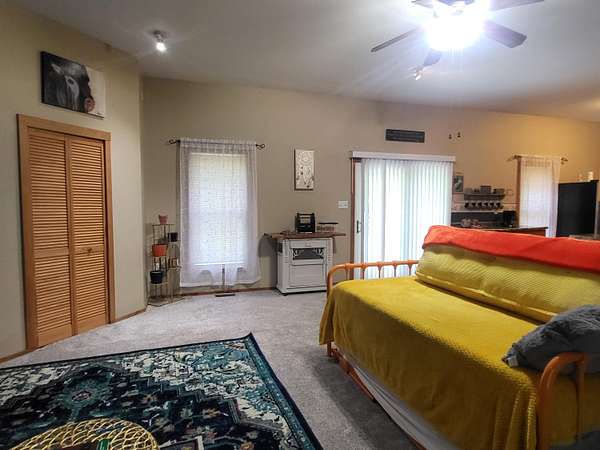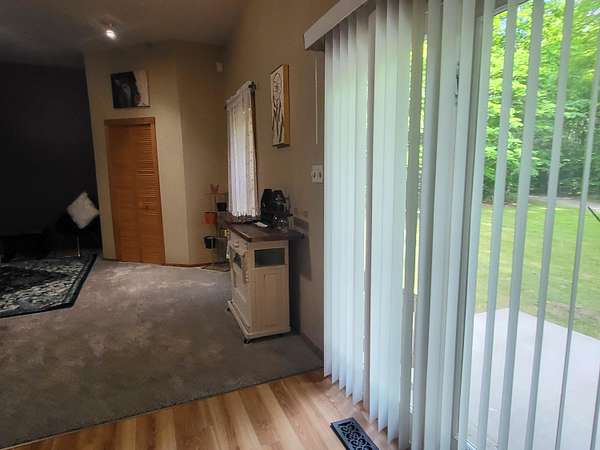 - Blinds, Ceiling Fan, Curtain Rods, Doorwall, Drapes, Walk-In Closet(s)