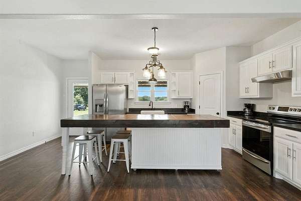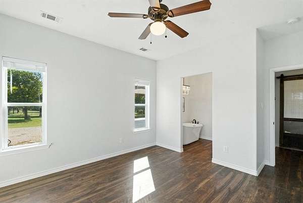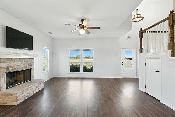 Horse Property!! Welcome home to quaint country living! Nestled on 3.25 acres of manicured pastures and shaded by mature oak trees, this move-in ready property offers the perfect blend of rural serenity and modern convenience. Located just minutes from Weatherford, Brock, Granbury, and Stephenville, and only an hour from Fort Worth, you'll enjoy peaceful country life with easy access to the city. Step inside to discover a charming open-concept kitchen and living area, featuring a cozy wood-burning fireplace and a convenient half bath for guests. The primary suite offers a spa-like retreat with a freestanding soaking tub, double vanity, and walk-in closet. Upstairs, you'll find two spacious bedrooms, a full bath, and ample attic storage. Outside, the property shines with a new five-stall barn--perfect for horses or livestock--and beautifully maintained acreage ready for your equine pursuits or peaceful enjoyment. Whether you're an equestrian enthusiast or simply seeking tranquil country living, this property delivers unmatched comfort, charm, and opportunity. Don't miss your chance to call this serene retreat home!