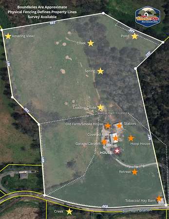 From Chestnut Ridge Road, turn on Lost Creek Road, left on Tanyard Hill Road, take a slight right on Bull Run Road. About 1 mile the property will be on the left hand side. Driveway marked by tobacco/hay barn at road.