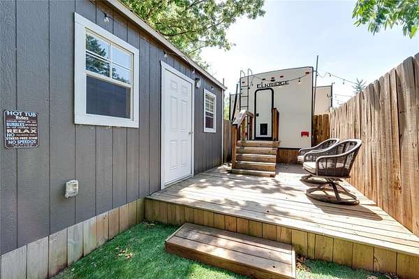 Great weekend place! Minutes from Bois d'Arc Lake! Bois d'Arc Lake is the newest major reservoir in Texas in over 30 years. Visitors to Bois d'Arc Lake can enjoy boating, fishing, hunting, picnicking and other activities around the lake. There are three public access areas with boat launch ramps, day-use picnic areas and restrooms. Just 5 minutes from the south boat launch. Stay for the weekend or use as an AIRBNB for great income. Enjoy the wooded 4.50 acres with your ATV's on the trails. This property comes with a beautiful 2018 Heartland Elkridge 5th wheel, renovated barn, utility storage room and hot tub! Fully stocked and ready for the next weekenders! Plenty of room for your boat too! This property is completely fenced and gated. Close to restaurants and shopping with being only 20 minutes from Bonham and 30 minutes from Sherman. Honey Grove ISD. Outside city limits with low taxes.