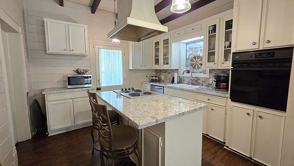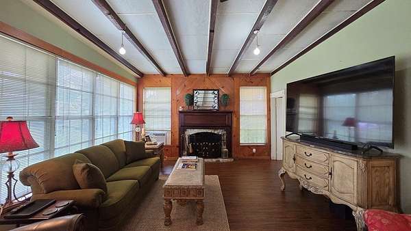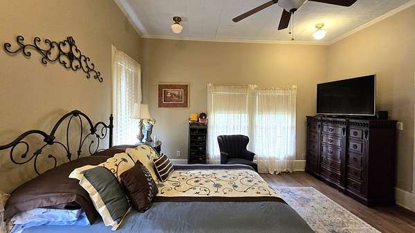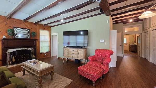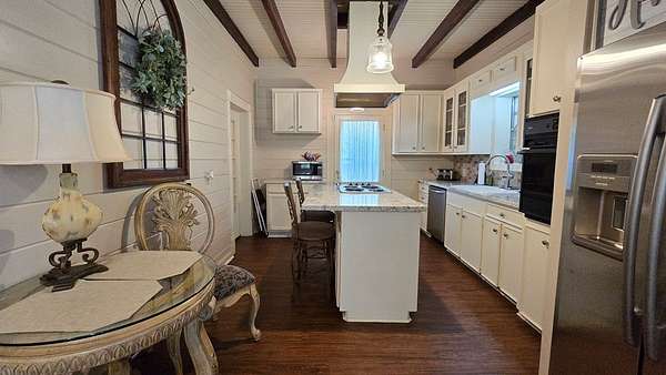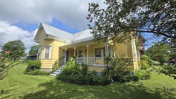 Own a piece of East Texas history with this charming 1905 farmhouse built by George T McNiel, on 4.675 acres in the heart of Cushing, situated between Nacogdoches and Tyler. Enjoy wide-open pasture, a serene pond, and shade trees. The property offers multiple outbuildings including a large insulated 2-story insulated shop on slab with electrical avail, a 3-car detached garage, double carport, storage room under the porch, and additional storage areas throughout. Inside, find soaring 10.5' ceilings, 2 fireplaces, granite countertops, vinyl plank and wood flooring, a pantry, office, dining room, and multiple bedrooms—one with a fireplace, including 2 small upstairs rooms and a half bath. The layout and land make this ideal for hobby farming or FFA projects, and the location makes peaceful country living. Cushing offers a peaceful, rural lifestyle rooted in strong community values, with heartfelt support and pride for its local school district. Come settle in and cheer on the Bearkats.