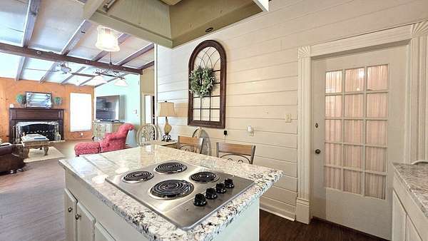 - Ceiling Fan(s), Dryer Connection-Electric, Gas Water Heater, Kitchen Island, Pantry