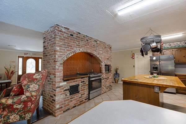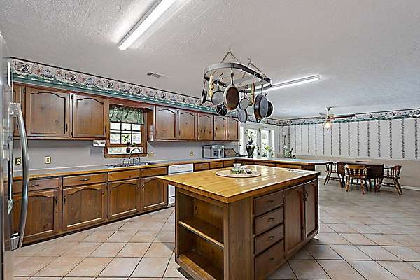 Secluded Brick Ranch Retreat on 20+ Acres with Private Lake & Pool. Tucked away behind a gated entrance and surrounded by over 20 acres of serene countryside, this sprawling brick ranch offers the perfect blend of comfort, privacy, and versatility. With nearly 3,300 square feet of living space, this 4-bedroom, 3-bath home is designed for both everyday living and entertaining. Step inside to discover a spacious split floor plan, highlighted by warm wood floors and soaring cathedral ceilings in the great room. A cozy fireplace sets the tone for relaxing evenings, mirrored by a second fireplace in the private primary suite. The heart of the home features a one-of-a-kind stone surround oven area-perfect for the inspired home chef. The flexible layout includes a fourth bedroom with an en-suite bath, ideal for an in-law suite, guest quarters, or private office. Enjoy outdoor living with a private inground pool, perfect for summer days spent soaking up the sun. Nature lovers will be captivated by the private 10-acre lake, offering breathtaking views and recreational potential. Multiple outbuildings, including a four-bay garage located near the front of the property, provide ample storage, workshop space, or hobby use. Whether you're seeking a peaceful homestead, a family retreat, or room to expand, this rare property combines timeless style with extraordinary amenities-all just a short drive from town, yet worlds away from the ordinary.