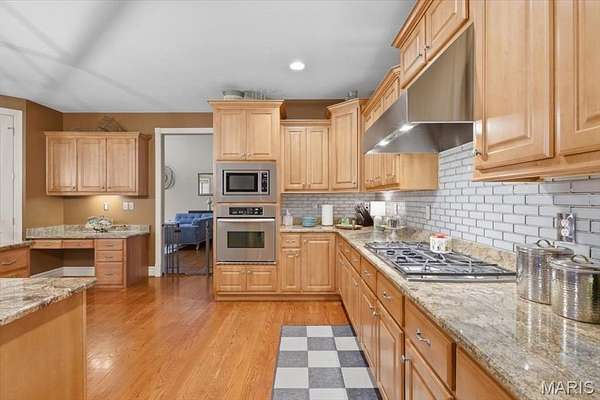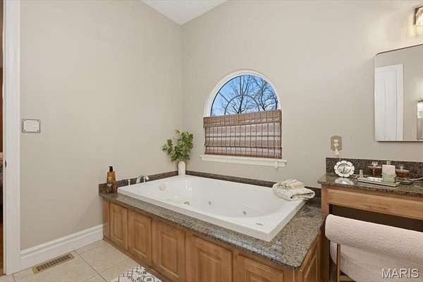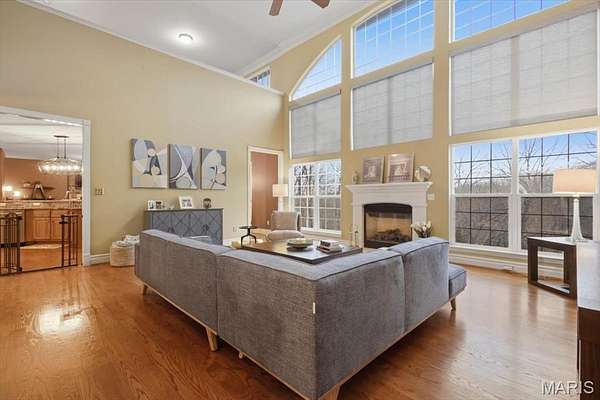 Sprawling custom estate on an ultra rare 3+ acre private lot in the Legends Golf Community! Dramatic & elegant curb appeal with full brick & stone front elevation, 2 separate & oversized 2 car garages, sweeping roofline with architectural shingles (new in ‘23) & mature, easy to maintain landscaping w sprinkler system. Walk up to a 2 story entryway with large stone pillars & into a spacious, open floor-plan with high ceilings, wood flooring throughout, neutral colors & over 5,000 square feet of living space. Formal living room is improved with crown molding & can easily serve as your home office. Formal dining room can accommodate even the largest furniture for holiday entertaining. 2 story great room is adorned with a full rear wall of atrium windows overlooking nature, recessed lighting & gas FP. Gourmet, eat in kitchen is improved w/42 inch custom cabinets, granite counters, wall oven/micro, subway tile backsplash, gas cooktop, center island/breakfast bar, wet bar, dining area, hearth room, 2nd gas FP w/brick accent wall & full laundry room. Main floor MB suite includes a luxury master bath with jetted tub, glass shower enclosure, his/her vanities, custom fixtures & large walk in closet. Upstairs is a useful den area, 3 spacious bedrooms & 2 full baths. Walk-out LL partially finished in 2025 with stained concrete flooring, recreational/living space, plentiful storage, numerous windows & walk out access. Out back is a wood deck & large concrete patio overlooking a picturesque & private lot surrounded by natural foliage. Walking distance to the Legends Country Club, just a golf cart ride away from dining & shopping in downtown Eureka, numerous neighborhoods amenities & more!