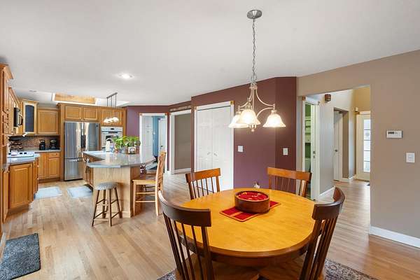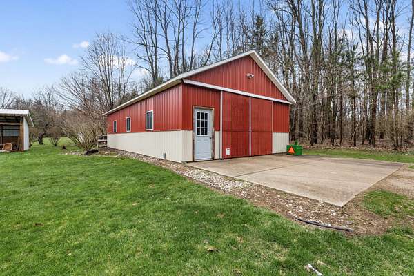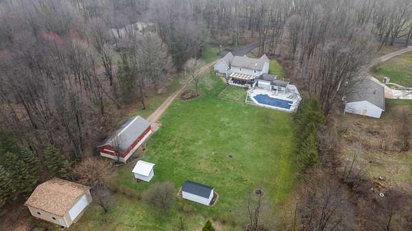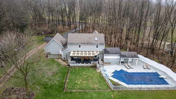 The Comfy Country Pool House offers a beautiful, private setting for this exceptional home, nestled on over two wooded acres. The outdoor amenities are the true highlight. Enjoy your own backyard retreat with an in-ground pool and a convenient pool house bathroom.A 24' x 44' pole barn with running water, electricity, offers endless possibilities for hobbies, storage, or a workshop.The home welcomes you with a two-story entry and flows into a spacious kitchen featuring abundant cabinetry, solid surface countertops, and a center island perfect for gathering. The main level also includes a large dining room, a half bath, convenient mudroom access to the attached two-car garage, and hardwood floors throughout. Upstairs, you'll find a generous primary suite with a beautifully updated private bath, along with two additional bedrooms and a full bathroom. The finished basement adds approximately 900 square feet of additional living space.
