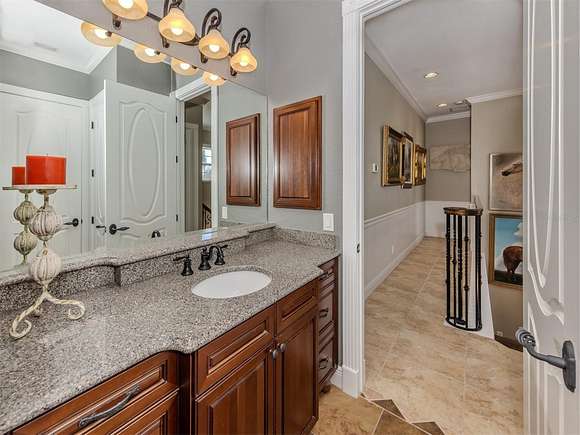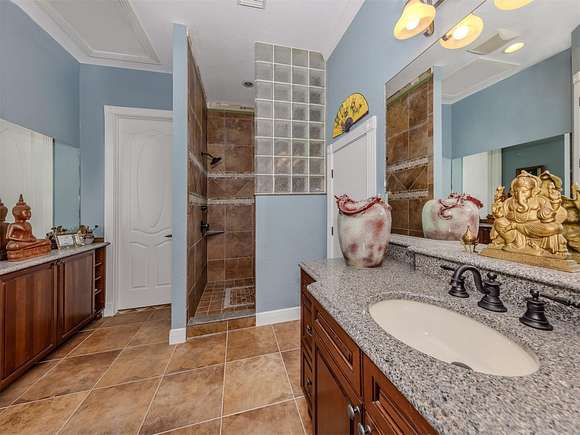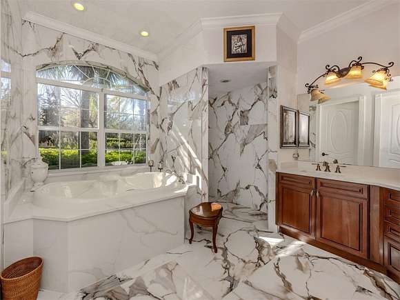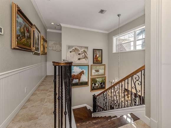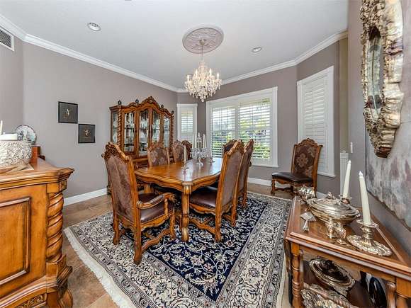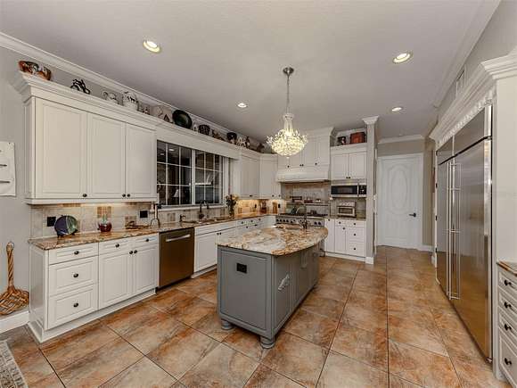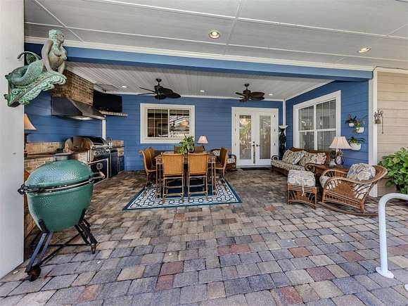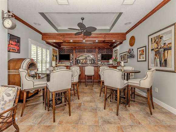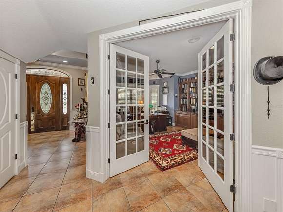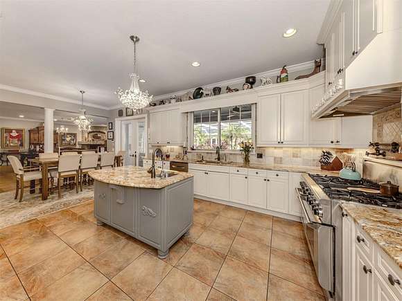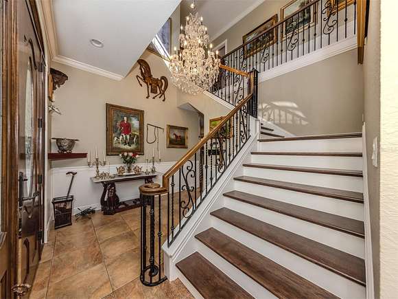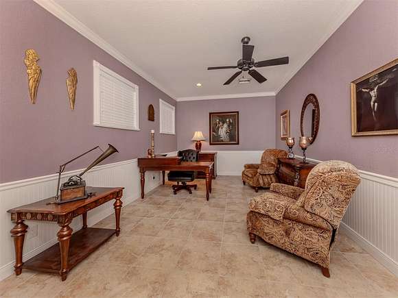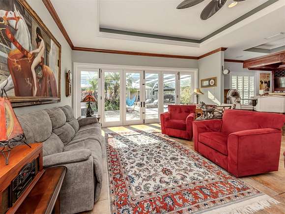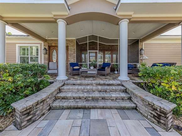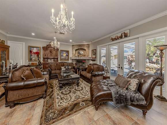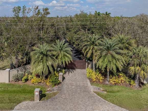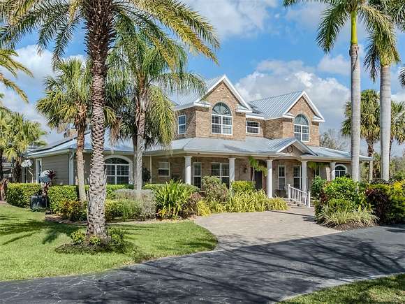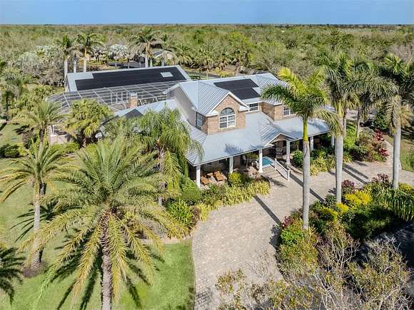 Welcome to an exclusive, gated luxury retreat, a one-of-a-kind three-home compound on five acres of manicured grounds, offering unmatched privacy, security and resort-style living. Step beyond the concrete perimeter wall and double-gated entrance into a world of elegance. Lush landscaping, a serene pond with a waterfall and a grand circular driveway set the tone for this exceptional estate. Whether you're entertaining guests, enjoying multigenerational living or seeking an investment opportunity, this property is designed to impress. Each home features its own entrance and front patio. The main residence is a sophisticated sanctuary with five bedrooms and 4.5 baths. Enter through a two-story foyer featuring a stunning crystal chandelier and a sweeping wood staircase leading to three spacious bedrooms upstairs. In the north wing of the main level, the luxurious primary suite offers its fireplace and a spa-like bath for ultimate comfort. On the opposite side of the home, there is a guest suite and a laundry room. The gourmet kitchen, equipped with granite countertops, a center island and top-tier stainless-steel appliances, leads into a separate dining room. The grand living room, complete with a fireplace, seamlessly connects to the resort-style outdoor living space. The covered lanai, with a fully equipped outdoor kitchen and a cozy fireplace, is designed for relaxation and entertainment. At the heart of the outdoor oasis is a custom pool with a stunning waterfall, surrounded by lush mature landscaping and enhanced by accent lighting to create a breathtaking ambiance. A vast 75-by-58-foot paver patio connects the main house to the pool house. The pool house is the ultimate entertainment space, designed for hosting and relaxation. It features a fully equipped bar and lounge, making it ideal for gatherings. An expansive entertainment area and a bedroom/media room provide ample space for leisure. The extra-large primary suite includes a private lounge area and two spacious walk-in closets with laundry facilities, offering comfort and convenience. At the rear of the property is a well-appointed guest home with an attached event hall featuring a comfortable one-bedroom, one-bath layout including a full kitchen, living room and laundry facilities. An extra-large three-car-plus garage with a workshop provides ample storage and workspace, and additionally, a bonus air-conditioned expansive event space. The estate's grounds are filled with thoughtful features, including a charming pergola-covered walking path that leads to seven raised garden beds with an irrigation system, ideal for growing fresh herbs and vegetables. Multiple meditation areas provide serene spaces for reflection. A paver RV parking pad with an electricity hookup and pump-out ensures easy accommodation for recreational vehicles. This estate is a rare find. Easy access to Interstate and Punta Gorda Airport. Schedule your private tour today.