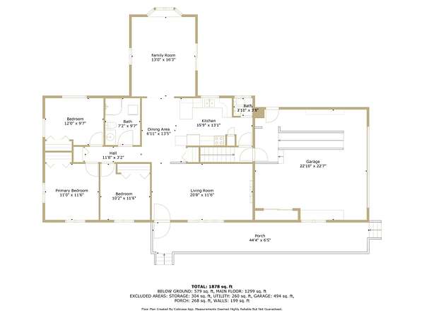- Basement, Bathroom x 2, Bedroom x 3, Dining Room, Family Room, Kitchen, Living Room