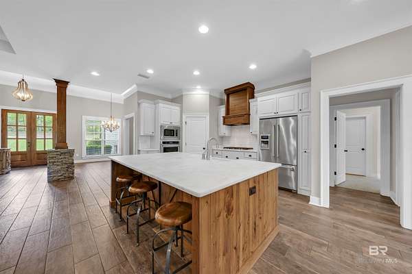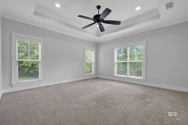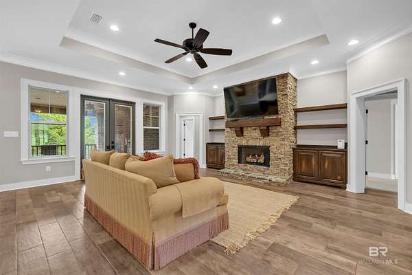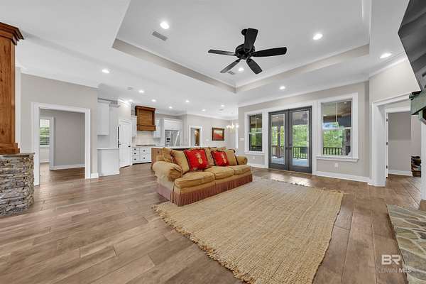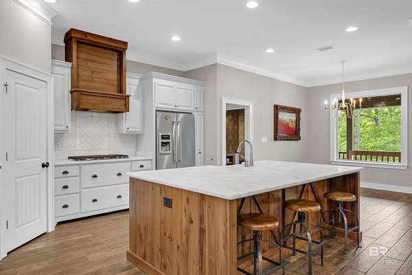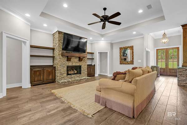 Tucked away on 3 PRIVATE ACRES yet just MINUTES from everyday conveniences, this CUSTOM-BUILT 4 bedroom, 3 bath home with a dedicated office/study offers the perfect balance of space, function, and peaceful living - all within the SPANISH FORT SCHOOL zoning. From the moment you arrive, you'll appreciate the quiet setting and room to spread out. Inside, the home features a spacious layout with thoughtfully designed living areas, including a cozy gas fireplace anchoring the living room. This home has beautiful finishes you are sure to appreciate! The primary suite is oversized, offering a true retreat with a large walk-in closet that connects to the bedroom and bathroom. Speaking of bathroom, this one gives space and relaxation vibes with the double vanities, freestanding tub, and separate tiled shower. Need flexibility? The additional office/study (or 5th bedroom option) provides the perfect space for working from home, guests, a playroom, or hobbies. With a 3-car garage, there's no shortage of storage for vehicles, tools, or recreational equipment. Step outside and enjoy what makes this property truly special, a large back deck complete with a wood-burning fireplace, ideal for cool evenings and entertaining. The backyard is wide open and private, featuring a firepit area perfect for gathering under the stars or maybe family time roasting marshmallows. While the setting feels secluded and off the beaten path, you're only 10 minutes from a major grocery store, shopping, and dining, giving you the best of both worlds!! If you've been searching for acreage, privacy, and a well-built home in a great area, this one is worth a look. Schedule your private showing today! Buyer to verify all information during due diligence.