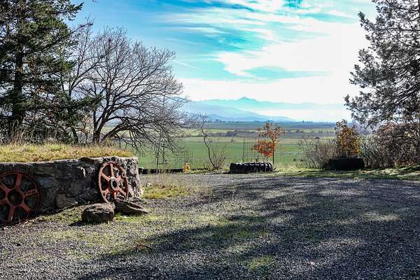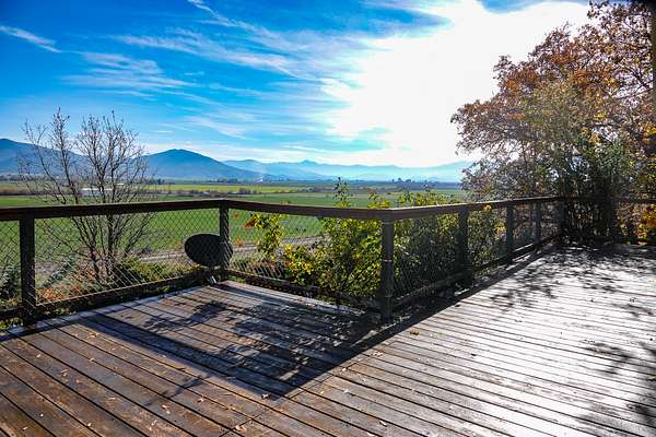 View, view, view! This split-level home has a 180-degree view overlooking Scott Valley, in far northern California! The house is on 10.87 +/- acres and includes 2 shops and a barn, leased to Marble Mountain Machinery, as well as a garage/shop and carport at the house. The home's 3 levels have a half-flight between each level. There are entrances at the lowest and mid-levels. The mid-level includes the kitchen, living room, and dining areas, with a spacious deck out front to enjoy the views. The lowest level consists of an office, a large bonus room, a laundry room, and a bathroom. There is a Toyotomi portable electric heat-and-air unit downstairs and outside, and a concrete patio with a built-in BBQ. The top level includes three bedrooms, a bathroom, and a walk-in closet.