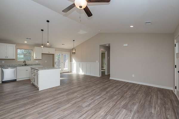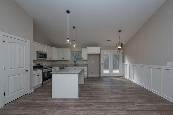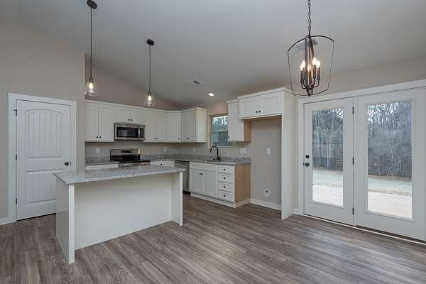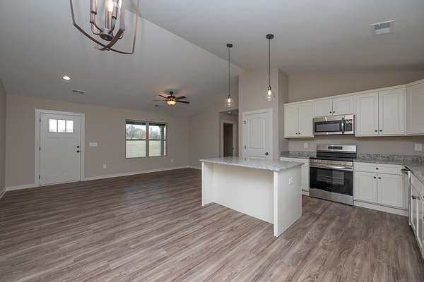 This charming home, situated on over 2 acres of land, offers an exceptional opportunity for those seeking space and freedom with no HOA restrictions. An additional 25x20 detached two-car garage provides a total four-car capacity and is ideal for storing a boat, camper, or creating the perfect workshop. The expansive driveway offers ample parking, making it perfect for gatherings or multiple vehicles. Inside, luxury LVP flooring flows throughout the home, providing both durability and modern style. The vaulted ceiling enhances the open living area, creating abright and spacious feel. The well-appointed kitchen features stainless steel Frigidaire appliances, granite countertops, and abundant cabinetry, making meal preparation both functional and enjoyable. The home offers three bedrooms, including a generously sized owner's suite that servesas a private retreat. The suite includes a full bath with a walk-in shower, double vanities, and a large walk-in closet. Additional highlights includes a spacious laundry area and a rear patio ideal for grilling and enjoying outdoor activities. With its desirable features, generous space, andattractive price point, this home is move-in ready and waiting for its next owner. Don't miss the opportunity to make it yours!