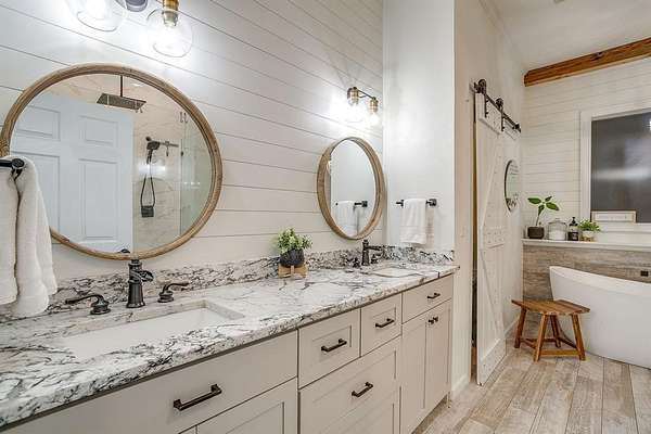 If you've ever felt the pull for more space, more privacy, and more intention in the way you live, this 5+ acre retreat offers exactly that. Peaceful, beautifully maintained, and thoughtfully laid out, the property provides a rare balance of open land and refined comfort--where gathering and solitude coexist effortlessly. The 2,000+ sq ft main residence features 4 bedrooms and 3 baths, including a junior suite with a built-in loft and walk-in closet. A well-appointed chef's kitchen anchors the home and opens to a spacious dining and living area designed for both everyday living and elegant entertaining. The entryway is large enough to accommodate a piano and additional seating. A secondary living space adds versatility and can easily serve as an office space, library, or curated lounge area. Outdoor living is equally inviting. A generous patio extends beyond the covered area, creating a natural transition to the shaded backyard framed by mature trees--ideal for quiet mornings or relaxed evenings outdoors. The property continues to impress with a separate, fully equipped 16x36 cabin, offering exceptional flexibility for guest accommodations or income potential. A detached tea house with oversized windows provides an inspiring space for a studio, private workspace, or creative retreat. Toward the back of the property, a fenced area is ready for horses or other animals, conveniently located near the detached garage and workshop. Whether envisioned as a private estate, a multi-use retreat, or a long-term investment opportunity, this property offers the space, serenity, and versatility to support a refined lifestyle. Bring your vision--this one is ready to exceed it.