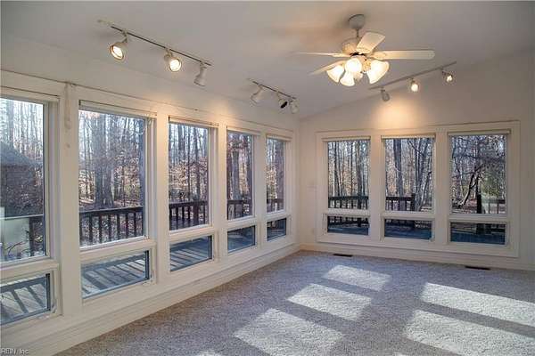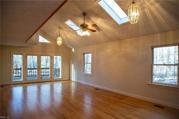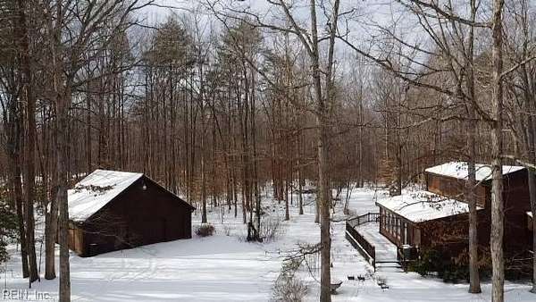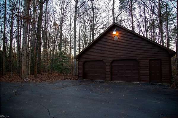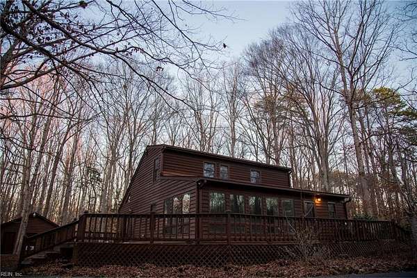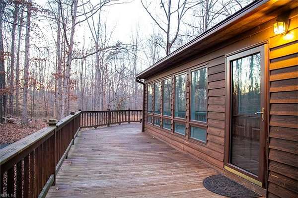 Welcome Home to Apple Grove Rd! A paved driveway leads you to a wooded retreat on 7.5 acres. Upon entering, the huge living room offers vaulted ceilings, skylights, & large French doors opening to an expansive wrap-around deck measuring nearly 1,000 sq feet. The main level showcases hardwood floors, a primary suite, & a sunroom that steals the show. Additional highlights include a 30x30 detached 3-car garage with ample power, lighting, stairs, & a second level for abundant storage. There is also a matching shed with electricity, lighting, & a garage door. You can enjoy wildlife & thunderstorms on the covered front porch with peace of mind, knowing the whole-house generator has your back. The crawl space was recently encapsulated & is climate-controlled. Enjoy country living with the convenience of a 20-minute commute to Lake Anna or 35 minutes to Short Pump for shopping galore. With privacy, space, & thoughtful care throughout, this property is a retreat you won't want to leave.