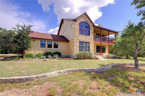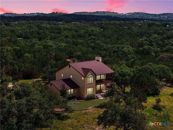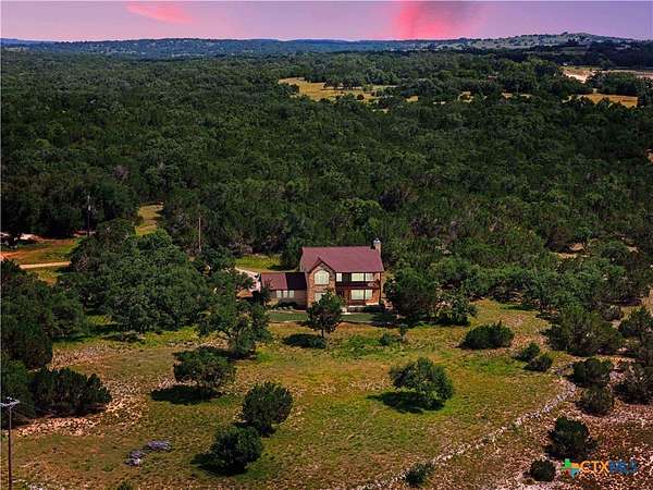 Presenting this chance to own a truly spectacular home in the Texas Hill Country! Perched on 5 magnificent acres within the secure, gated Cielo Springs subdivision, this property offers unparalleled privacy with its direct backing onto a private ranch. Just imagine waking up to those incredible, expansive views every single day. Step inside and find a home perfectly designed for both everyday living and lively gatherings. The spacious kitchen is a culinary haven, boasting a generous breakfast bar, a cozy eat-in area, abundant counter space, and ample storage, plus a convenient pantry. The heart of the home is the oversized family room, where a cozy wood-burning stone fireplace creates a warm ambiance, and large windows flood the space with natural light while framing those breathtaking vistas. Outdoor living is a delight with three distinct areas to choose from: a welcoming covered front porch, a serene covered back porch, and a peaceful screened-in porch. They're perfect for sipping your morning coffee or unwinding as the sun sets. The primary suite is your private sanctuary. Its luxurious primary bath features double vanities, a separate shower, a blissful Jacuzzi tub, a substantial walk-in closet, and even its own private upstairs balcony - ideal for soaking in the panoramic scenery. Downstairs, a flexible space easily serves as a dining room or a dedicated home office. Practical features include pre-plumbing for a water softener and two efficient AC units with a heat pump. Blanco puts you in the heart of everything the Hill Country has to offer. You're just 15 minutes from Johnson City, 30 minutes from Wimberley and Dripping Springs, and less than an hour from popular destinations like Canyon Lake, Fredericksburg, San Antonio, and Austin.