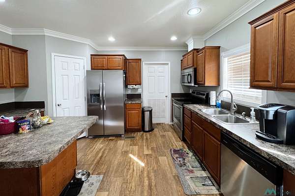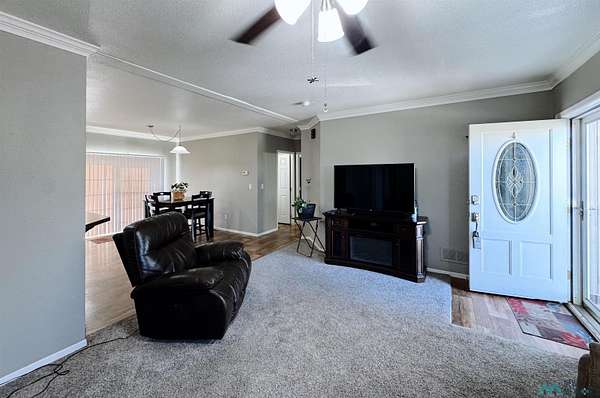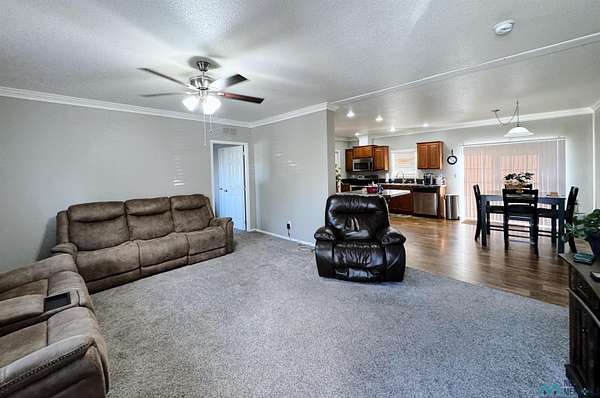 This move-in-ready home offers ample acreage, privacy, and a spacious 40x60 three-door shop (one 14-ft door, two 12-ft doors). The open floor plan connects the large living room, dining area, and kitchen. A laundry room off the kitchen leads to a deck overlooking the expansive backyard. Bedrooms and bathrooms are generously sized, and all carpet, paint, and fixtures are in excellent, like-new condition. Includes a well house. (Note: Shed west of the shop does not convey.)