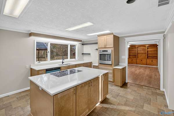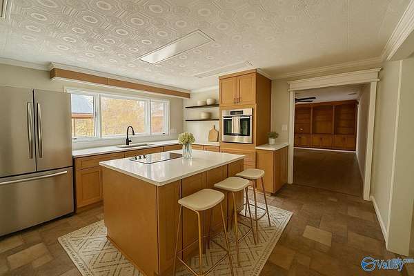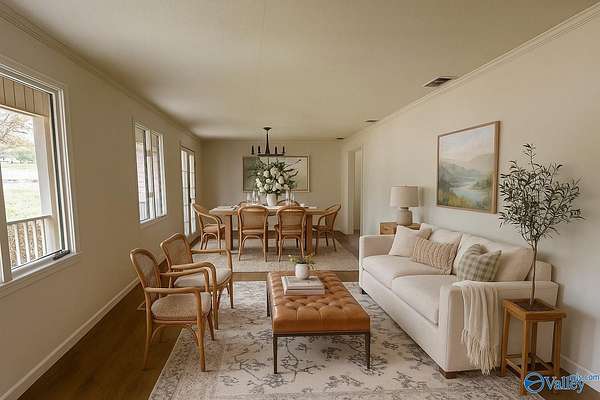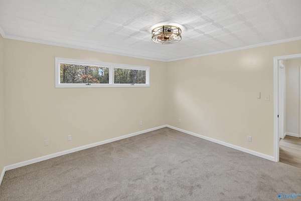 Charming, fully renovated one-level home on approx. 4 acres-perfect for outdoor living and entertaining! This 3-bedroom, 3-bath home features attched car garage plus a detached garage/workshop. Enjoy abundant natural light from expansive windows throughout. The roomy basement offers flexible use and doubles as a storm shelter. The stunning new kitchen boasts quartz countertops, all-new cabinets and appliances, and an induction stove. Relax in the spa-like mast. bath with a tiled walk-in rain shower and clawfoot tub. Other significant features include a new roof that is only 2 yrs. old, leaf guard for the gutters, new floors (LVP & Carpet), insulated walls, outdoor firepit, and crown molding.
