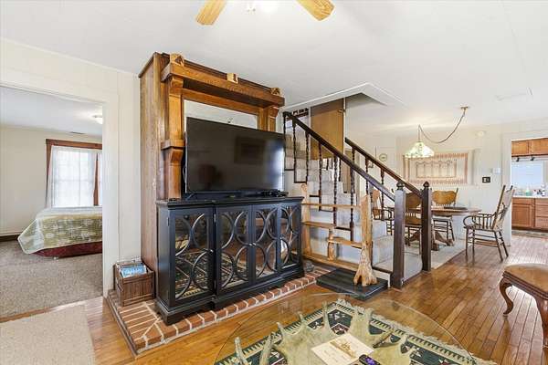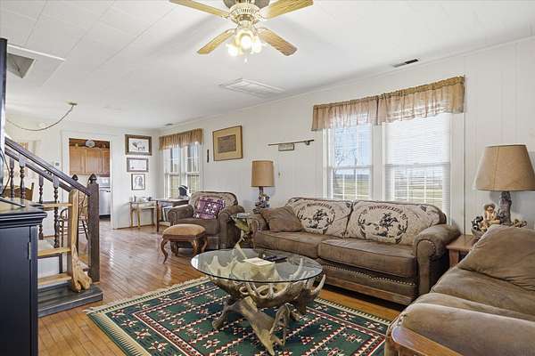 236 unrestricted acre cattle farm & hunting property with Beaver Creek frontage! The Hilton House is full of history with a long list of guests, some famous, that have stayed in the home over the years. The home features 3 bedrooms, 1 bathroom, the rustic themed living room features a cozy wood burning fireplace plus there's also a loft. The kitchen features several cabinets & plenty of counter space & just off the kitchen is a mudroom too. The dining area is pure farm house styling & is sure to bring the family together for those home cooked meals! The home has been nicely updated with newer windows, newer HVAC system, new flooring in many of the rooms & a full set of kitchen appliances along with a washer & dryer. The exterior siding of the home was just re-stained this year. The covered front porch is an ideal spot to take in the views of the property & watch the sunrises & sunsets. The property is mostly cleared pastures & hayfields with some timbered areas. The property is also fenced & cross fenced & there's also a nice sized barn & another shed too. Beaver Creek is just across the pasture in front of the home so you'll have year round unrestricted access to some of the area's best fishing & kayaking opportunities. The North border of the property borders Mark Twain National Forest & provides additional hunting & hiking opportunities with direct access right from the property. The deer & turkey populations are excellent on this farm & have been very well managed for age & size for the last several years, check out the trail cam & trophy pics in the photos tab. This property is rich with history & has all the homestead vibes. Don't miss your opportunity to make this property yours!